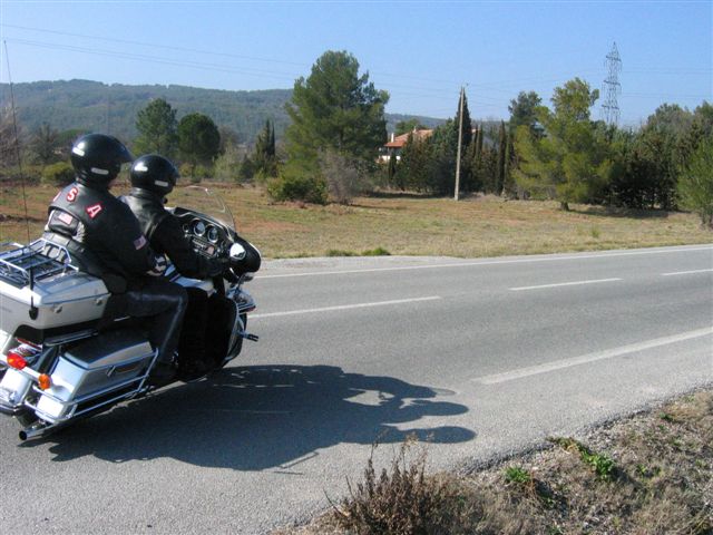 C'est par une belle journée printanière (le Printemps arrivait d'ailleurs ce jour-là) que les 50 Personnes et les 31 Motos ont pris la direction de Ramatuelle par la côte où nous attendait un copieux petit-déjeuner offert par Sandrine et Ian. Un grand merci à Sandrine et Ian pour leur sympathique invitation. Nous reprenons notre la balade par Sainte-Maxime et le Muy pour arriver à la Motte au Resto « Le Domaine de la Maurette » où le patron est un motard. Moments conviviaux autour d'un délicieux et copieux repas aux herbes de Provence (l'agneau sauce basilic). Moments d'émotion, quand Ophélie, qui fêtait ses 20 ans, dans ce même restaurant, a réalisé son rêve, « faire un tour en Harley », ce qui fut fait sur l'Electra de Christian. Bravo et Merci à Christian. Un pin's de notre Chapter a été offert à Ophélie et un agrandissement la représentant parmi nous lors de la photo de groupe traditionnelle autour du drapeau, lui sera envoyé. Après tous ces bons moments, il a fallu songer au retour. Celui-ci fut fait par la Nationale 7 et c'est à Carnoules que nous nous sommes dit au revoir. Cette journée est passée bien trop vite mais elle a été bien remplie et avec ce temps radieux tout le monde était enchanté.