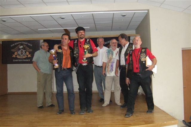 Ce sont 65 membres de notre Chapter et 45 motos, qui ont participé à cet Interchapters "Côte d'Azur" 2006, qui a vu pas moins de 218 membres des Chapters de Nice, Fréjus et Carqueiranne chevauchant quelques 150 machines, se réunir pour partager leurs passions communes, amitié, convivialité, bonne humeur, évasion, balade... et bien évidement Harley Davidson !!! Cette année La Balade a été préparée et encadrée par le Chapter de Fréjus, les jeux concoctés et animés par le Chapter de Nice, l'accueil et le repas organisés par notre Chapter avec le soutien de la municipalité de Forcalqueiret qui a mis tout spécialement à notre disposition pour cet évènement, la salle des fêtes et l'aire de jeux. Un grand merci à tous les officers et membres de nos Chapters respectifs qui ont travaillé pour faire de cette rencontre, et ceci de l'avis de tous, une magnifique réussite. Il convient également de remercier la commune de Forcalqueiret, pour son accueil et son soutien, la société Tahiti Pacific pour la qualité de son buffet et de l'ensemble de sa prestation, Madame Michèle Gonon pour ses magnifiques tuiles peintes et enfin le soleil pour avoir été au rendez-vous. UNE SUPER JOURNEE !!!