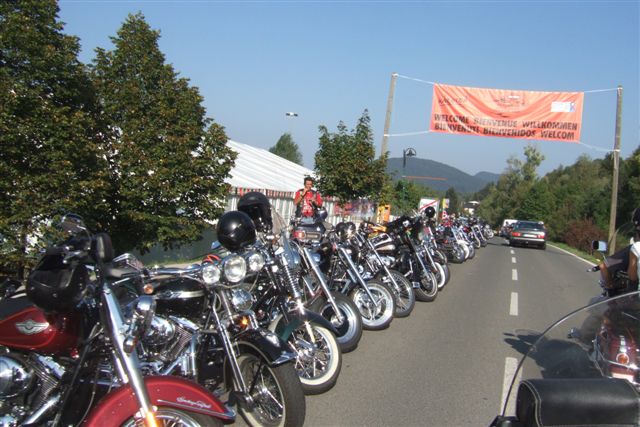 Du 03 au 11 Septembre 2006. EUROPEAN BIKE WEEK FAAKER SEE 2006 §§§ Page 1 - Page 2 §§§ Ce n'est pas moins d'une vingtaine de membres de notre Chapter qui se sont rendu en Autriche pour ce grand événement que représente le rallye de Faaker See. Claudine ayant fait ses habituelles incantations au Dieu du beau temps, celui-ci, magnanime nous a offert huit jours de soleil, la route et le séjour furent donc des plus agréables. Outre, la bike-week, avec sa multitude d'exposants, ses milliers de Motos, de Bikers et son ambiance "Saucisses et Fête de la bière", nous avons fait un peu de tourisme, autour de Faaker See, Landskron, Villach et plus au nord également, jusqu'à Salzbourg "La petite Rome des Alpes" , mais aussi plus au sud, en Slovénie jusqu'à Ljubljana, la capitale et Bled "la romantique", nichée dans un cadre d'une beauté à couper le souffle. Que du bonheur, une semaine inoubliable !!! A la prochaine, en 2007 peut-être !!! §§§