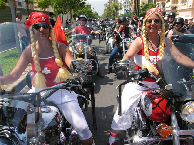 16ème European HOG Rally FUENGIROLA §§§ Voyage et Rallye du 18 au 26 Juin 2007. §§§ C'est une trentaine de membres du Chapter qui a fait le voyage, sur les routes magnifiques du centre de l'Espagne, jusqu'en Andalousie, à Fuengirola, une belle station balnéaire comme on en trouve sur la côte Espagnole. Sa particularité est le Recinto Ferial et ses Casetas ! Construites par diverses associations, les casetas sont des salles de fêtes chacune construite dans un style propre et bordant une avenue dédiée à la fiesta ! C'est donc ce lieu quelque peu magique que le HOG a choisi pour y organiser son 16ème rallye Européen. Bon choix, car la fête y fut des plus réussie, tout y était, ambiance, météo, spectacles, belles balades dans des lieux comme Séville, Malaga, Gibraltar, Ronda, Sierra Nevada ... et une grosse participation, puisque l'on parle de 8 à 10.000 entrées. § La Route Aller !!!