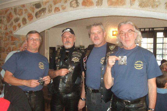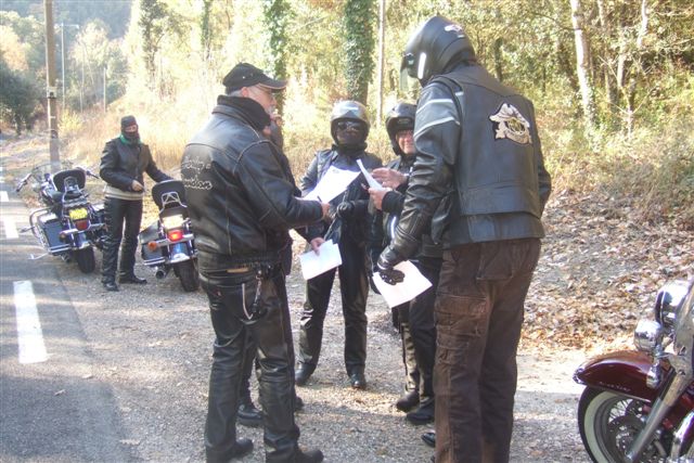 Dimanche 18 novembre 2007 RALLYE ANNUEL du Chapter C'est la tradition, notre Rallye annuel est dédié au Téléthon. Dans le petit matin de ce dimanche glacé, les courageux participants carapaçonnés dans leurs vêtements d'hiver, armés de leur seul road book, sont partis dans le froid à la recherche des points de contrôle où les attendaient d'intraitables examinateurs. Après avoir traversé, ces épreuves où leur chance au jeu, leurs connaissances, leur mémoire et leur adresse ont été testés, ils ont pu enfin, devant le bon feu de cheminée, de l'auberge des Danjean, reprendre des forces (et des kilos) en dégustant l'excellente cuisine du maître des lieux. Je remercie ici, tous ceux qui m'ont aidé à la préparation et au bon déroulement de cette journée et tous les participants pour leurs contributions à l'oeuvre du Téléthon. Un grand Merci également à notre concession "Harley-Davidson Carqueiranne" qui a fourni les lots de la Tombola et les récompenses des jeux.