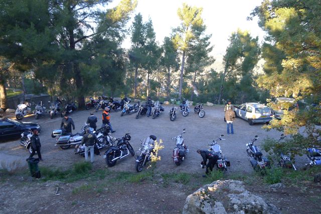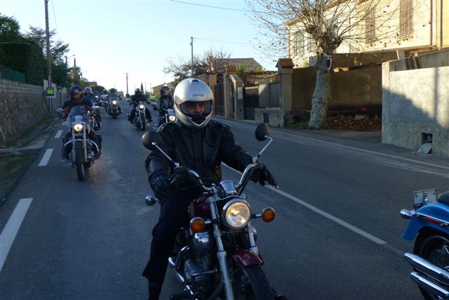 Après la sympathique, mais solennelle bénédiction des motos et des équipages, faite par le Père Raphaël, curé de Carqueiranne, nous voici partis pour une petite balade qui nous a mené au Beausset-Vieux.