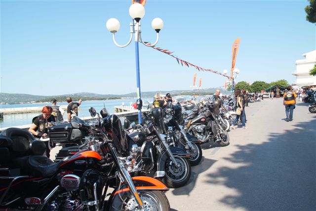 20th European HOG Rallye BIOGRAD CROATIA §§§ Du mardi 24 au mardi 31 Mai 2011 §§§ PAGE 1 §§§ Ce sont 24 membres du Chapter Iles d'Or-Carqueiranne qui se sont déplacés pour ce 20 ème European HOG Rallye à Biograd en Croatie. Le voyage aller a été agrémenté par une soirée dans la belle ville de Padoue avec promenade sur la « Prato della Valle », une des plus grande place d'Europe et visite des Basiliques « Saint-Antoine de Padoue » et La brève traversée de la Slovénie faite en grande partie hors autoroute, sur une route roulante et pittoresque, nous a, tout de même, permis de trouver un sympathique resto qui a brisé la monotonie des « Autogrills » Italiens. Passée la frontière Croate une autoroute toute neuve, mais battue, près des côtes de l'Adriatique, par de très violentes brises thermiques , nous a conduit à la cité historique de Zadar, ville proche de Biograd, où nous avons élu domicile pour la durée du rallye et dont la vieille ville deux fois millénaire nous a enchanté lors de notre visite. La petite ville de Biograd, partagée entre tourisme et pêche, se révèle être le lieu idéal pour un rallye HOG, des quais bordés de commerces et de restaurants, prolongés par une longue plage aux abords ombragés. §§§ PADOUE !!!