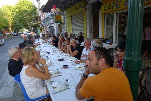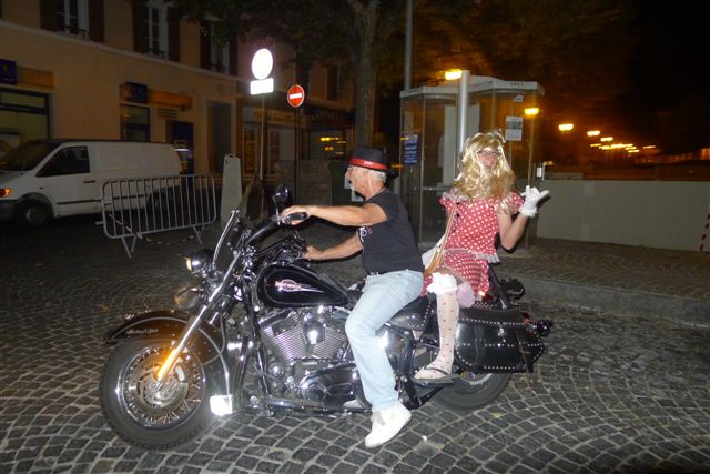 Les motos bien garées grâce aux bons soins de la municipalité, un acceuil chaleureux, un bon DJ, quelques paillettes, des copains, une table bien garnie.