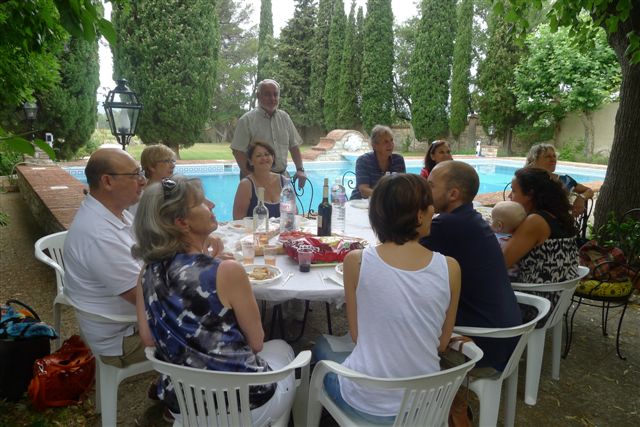La suite ? Un splendide cadre ombragé au bord d'une piscine, la vue sur un vignoble remarquablement tenu, des amis, un service à table attentionné, des cuistots efficaces, tous les ingrédients pour une fête réussie …
