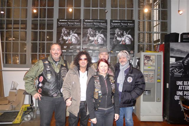 §§§ En prévision de sa tournée produite par le HOG France « Nono » est venu à la rencontre des bikers du Sud-Est, accompagné pour l'occasion de Stéphane Sahakian , Manager du HOG France. Cette entrevue chaleureuse a été organisée dans les locaux de la Concession HD Massilia à Marseille. Nono, malgré son statut d'artiste incontesté (Guitariste virtuose, il a notamment fondé le groupe « Trust » en 1977 et a longtemps accompagné Johnny Hallyday sur scène) a fait preuve d'une immense disponibilité envers les membres du HOG du « Marseille Chapter » et de l' « Iles d'Or Carqueiranne Chapter » de Toulon qui se sont rendus à cette invitation. Après une généreuse séance de dédicace et une belle photo de groupe, tout ce petit monde s'est déplacé, vers la Corniche Marseillaise , où près de l'espace Borély, un très sympathique restaurant nous attendait pour terminer cette belle soirée. Un grand coup de chapeau à tous les participants et organisateurs, pour ce très bon moment. Et il fallait y croire, car dame météo était ce jour là, d'humeur plutôt morose. Je profite de l'occasion, pour vous rappeler que « Nono » Norbert Krief sera en concert, à Marseille, à l' « Espace Julien », le vendredi 6 Avril 2012 (Réservations sur www.veryshow.fr ou sur le site du HOG France, tarif préférentiel pour les membres du HOG). A bientôt ... §§§ §§§ §§§ §§§ A BIENTOT !!! |