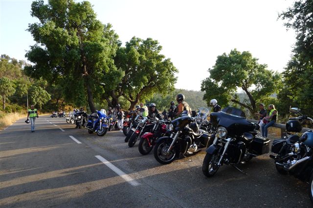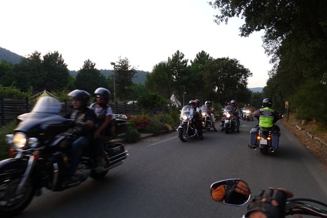 Nos petites routes, sillonnant un arrière pays que beaucoup nous envie, se prêtent merveilleusement à cet exercice. Nous laisser mener par le gros coeur de nos machines et sentir le crépuscule qui lentement mais inexorablement, referme sur nous les mystères de la nuit, c'est une émotion que seule la moto nous apporte, ici nulle carrosserie pour nous isoler de cette "sorgue" qui nous engloutit. Sans cocon, c'est le contact direct avec la nature qui mute vers les ténèbres. Nous nous sentons tout petit, le familier fait place à l'inconnu, tous nos sens sont en éveil, mais on est si bien, rassuré par la présence de ce groupe pétaradant.