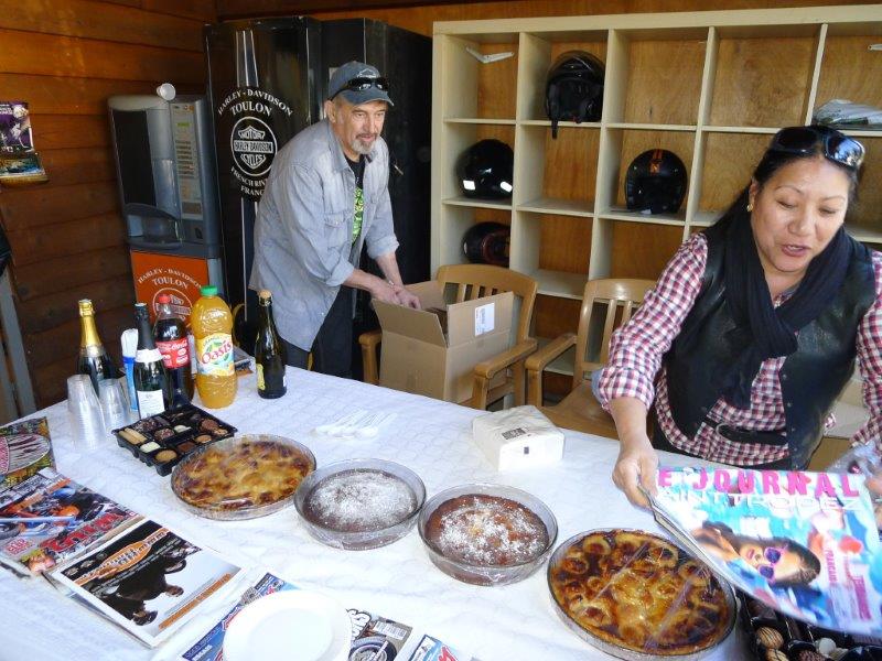 Je ne pense pas qu'il faille chercher bien loin, quand on voit avec quel plaisir et quelle sincérité ces goûters sont organisés et offerts, c'est tout simple, ils sont heureux. Heureux de l'accueil, de l'ambiance, heureux d'appartenir à la grande famille du HOG et à notre Chapter et ils le montrent, comme Maguy et Alain ce samedi après-midi.
