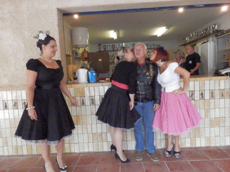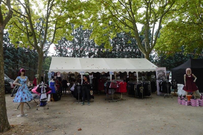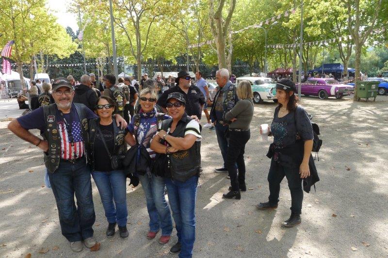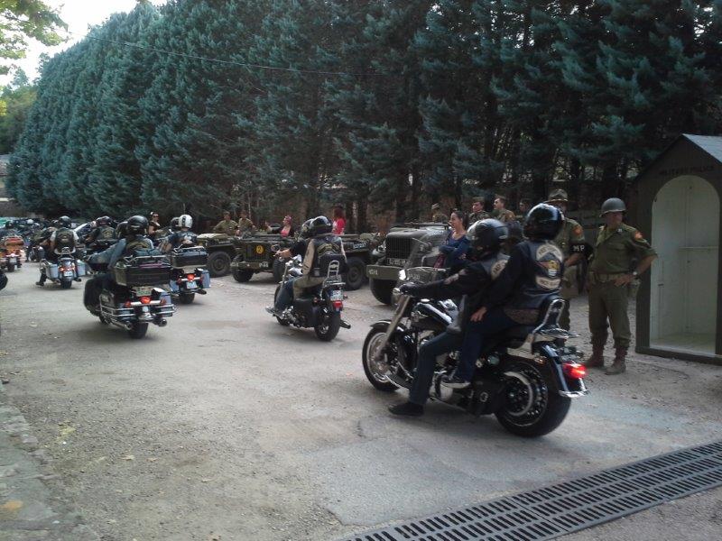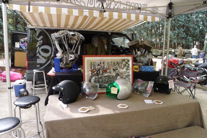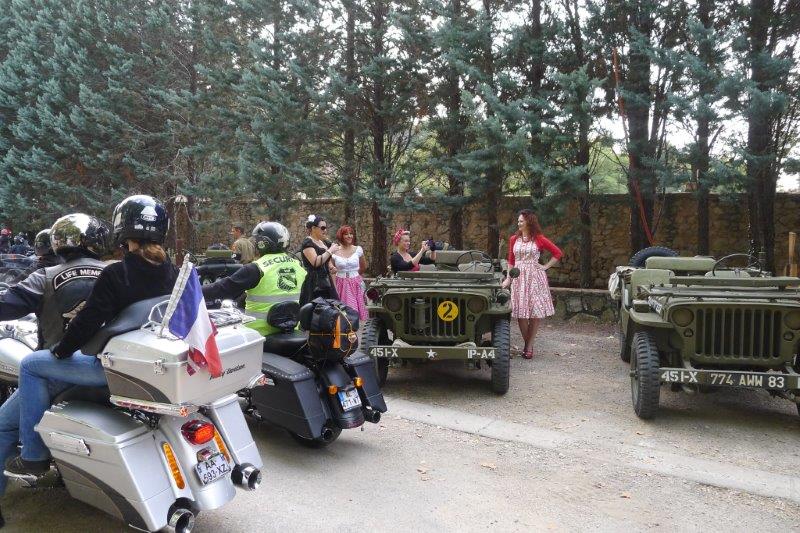 Salués à notre arrivée par un G.I. à la tenue irréprochable, nous sommes tout de suite dans l'ambiance. Tout y est la caravane Airstream à l'alu poli digne d'un B29, les pin-up sorties du magasine Esquire qu'Alberto Vargas aurait bien pris pour modèles, la line-dance, les belles américaines des sixties avec leurs chromes avantageux, un détachement de G.I. au complet avec armes, véhicules, tentes et jolies auxiliaires féminines du W.A.C., de nombreux stands bien achalandés et bien sûr ....tout plein de Harley Davidson !!! Sans oublier le marchand d'ice-cream!!!
