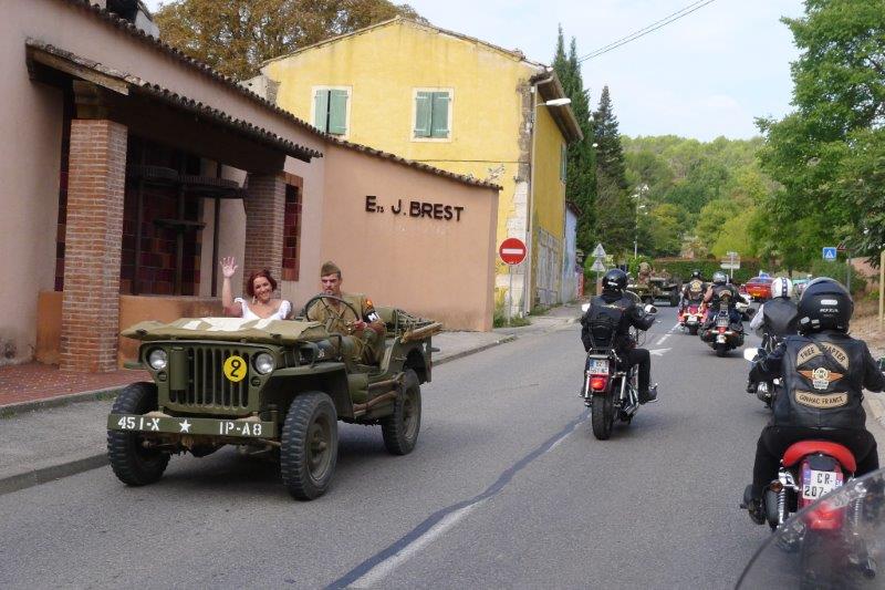 Une parade ouverte par les M.P. nous a fait traverser Salernes, sous les saluts des Salernois conquis par ce cortège aussi hétéroclite que tonitruant.