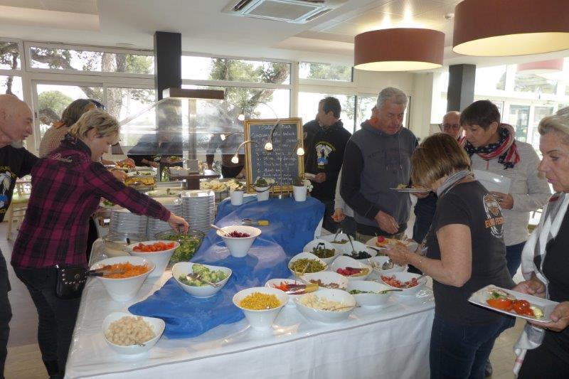 Qui dit mise en bouche, dit repas, après la balade dans l'arrière pays, c'est au « Vacanciel » "La Valérane" à Carqueiranne, bien sûr, que nous nous sommes retrouvés pour un "frugal" buffet ...et grillades !!!