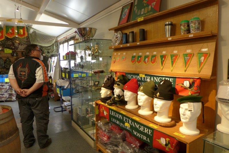 Une boutique propose un large choix d'articles sur le thème de la Légion et bien sûr le vin du domaine, produit sur place.