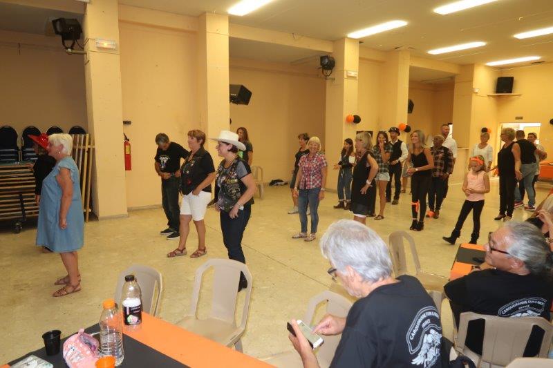 Barbara n'a rien laissé au hasard pour que la fête soit belle, repas fait maison, ambiance et démo country, jeux, concert privé de musique "Bluegrass", gâteau magnifique sur le thème de la moto ...