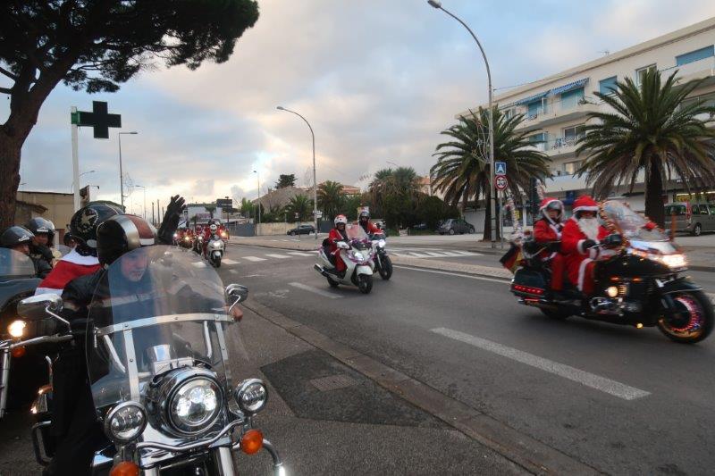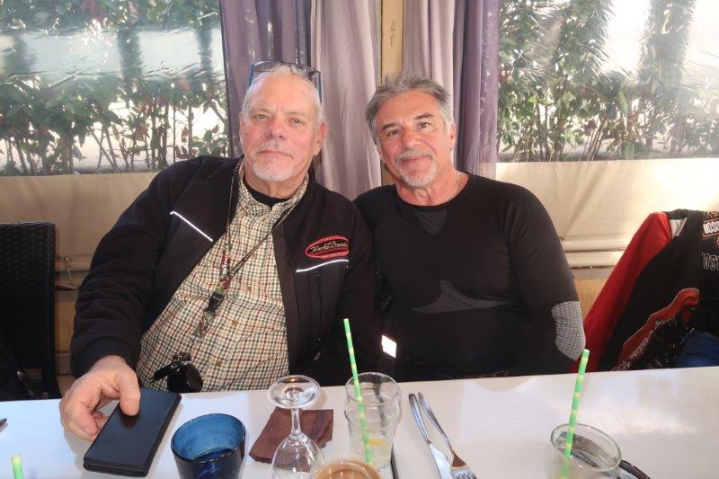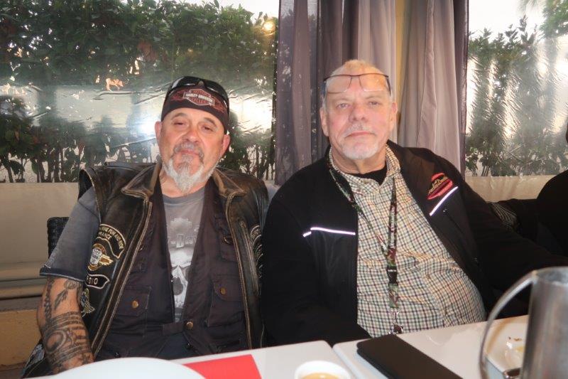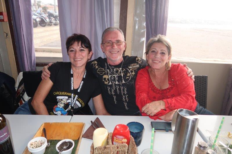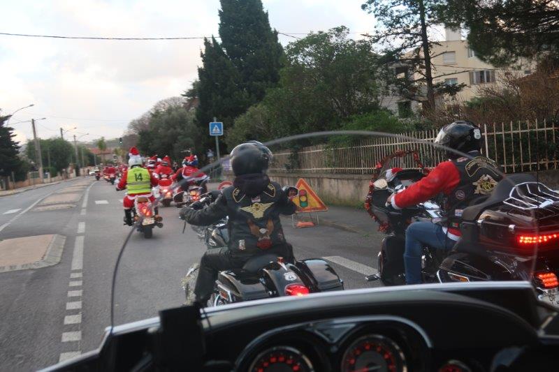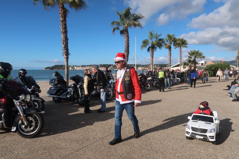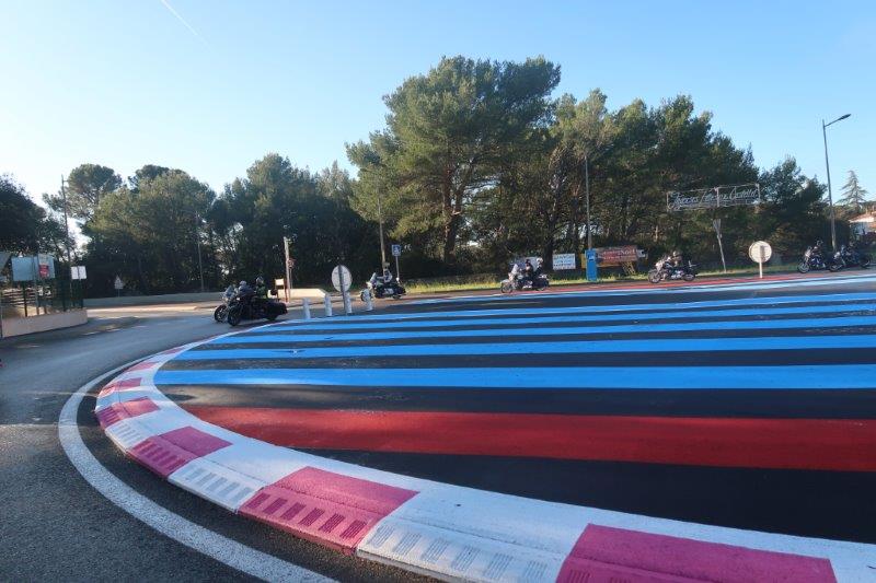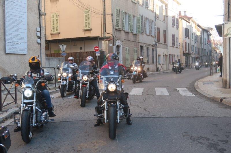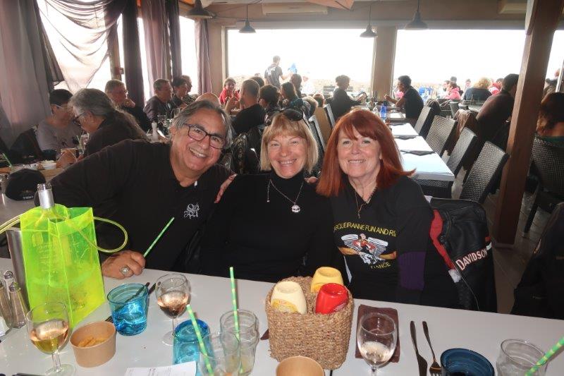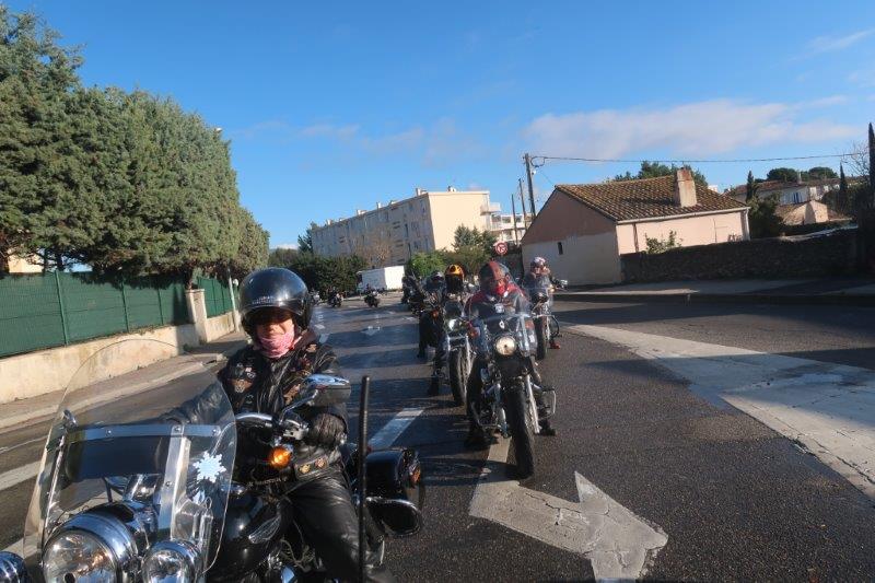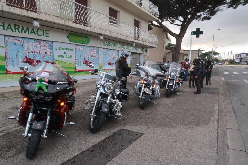 Notre trentaine d'Harley-Davidson, alignées comme à la parade, avec notre belle mer méditérranée en toile de fond,