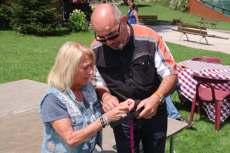 Pour que cette journée reste inoubliable, un pendentif en argent, réalisé par Jeff, représentant un aigle tenant dans ses serres trois anneaux marqués respectivement « Marie », « Legend Motorbike » et « Jean-René », a été offert à Marie par l'ensemble des participants.