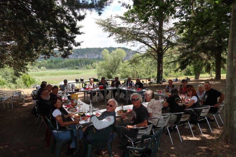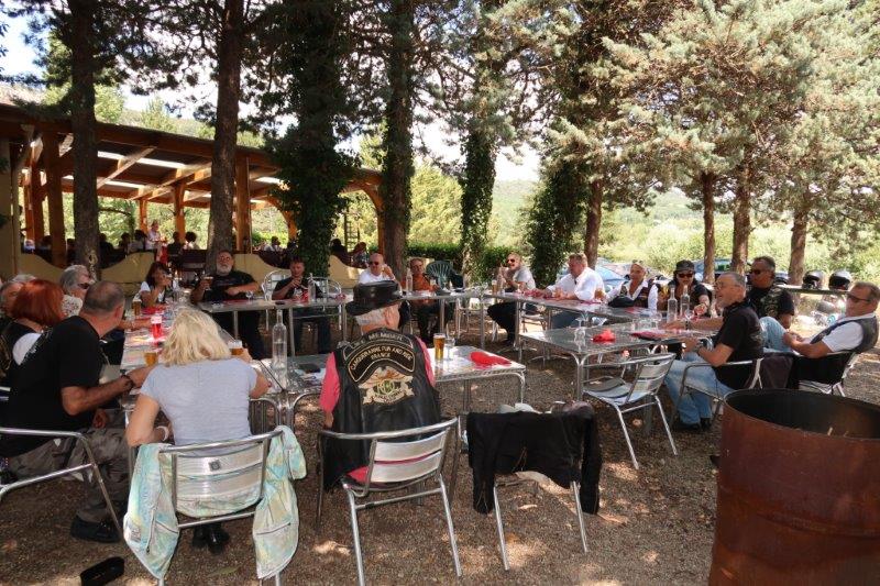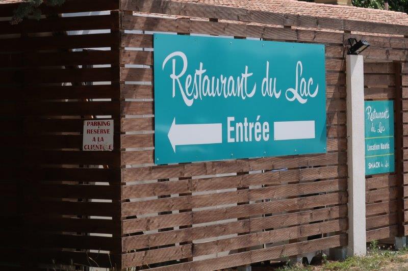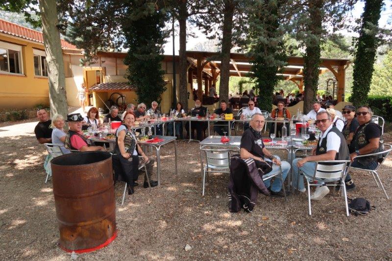 En fouillant dans les souvenirs, a ressurgi un restaurant, dans un endroit sympa, sur les bords du Lac de Quinson, avec une vue superbe sur la nature et bien à l'ombre (même pour les motos).