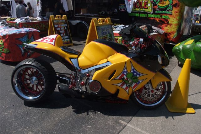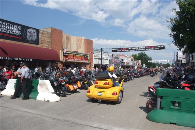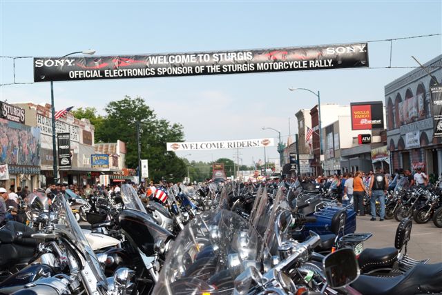6442 âmes, oui mais pas pendant la 1ère semaine d'Août, car là, c'est par centaines de milliers que convergent les bikers des USA et d'ailleurs, ce qui fait de cette bourgade le plus gros rassemblement de motards de la terre.