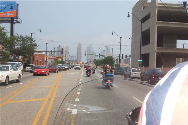 USA - Route 66 Août 2007 §§§ CHICAGO §§§ Chicago c'est "Wind City" la ville du vent, avec ses grattes ciel, ses marinas sur le lac Michigan, ses banlieux chics (et moins chics) et son passé sulfureux. C'est aussi le point de départ de la Route 66. Le centre de Chicago, à pied et avec bagages !!!