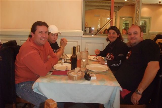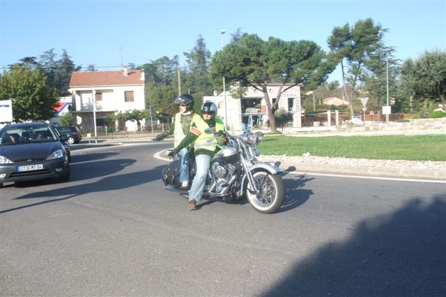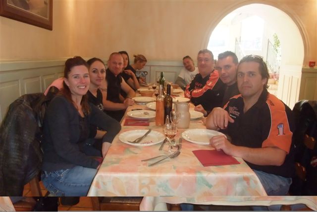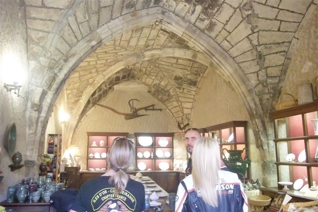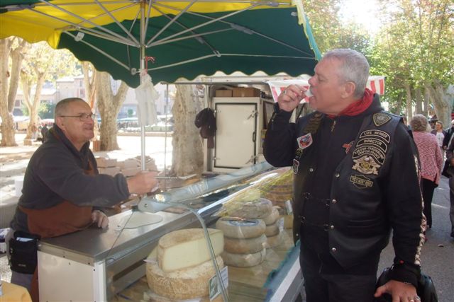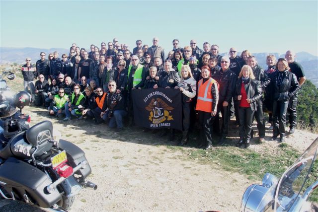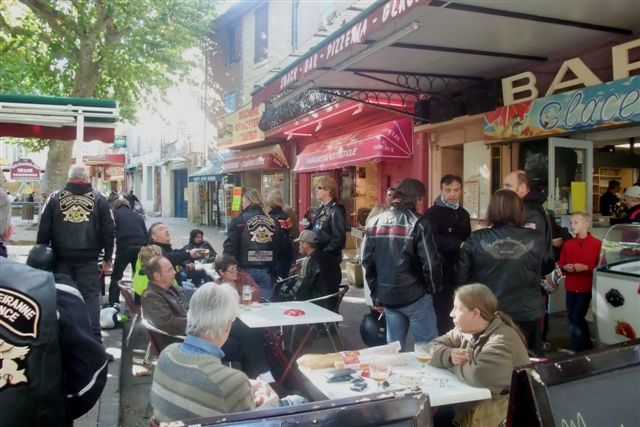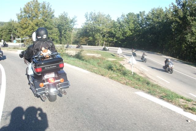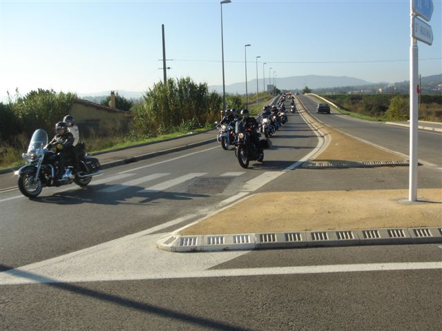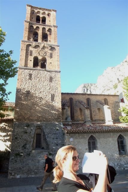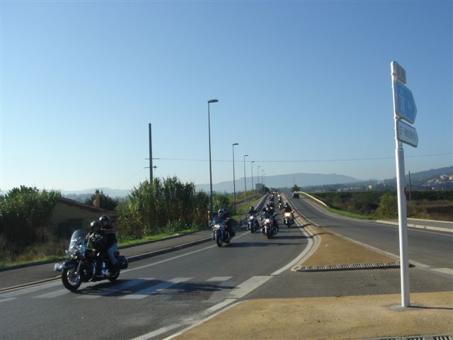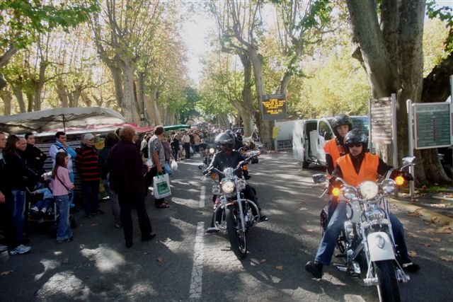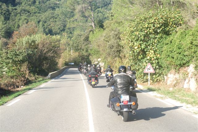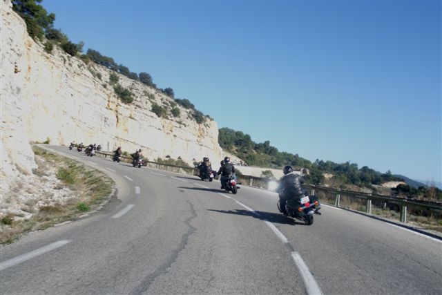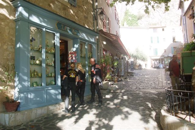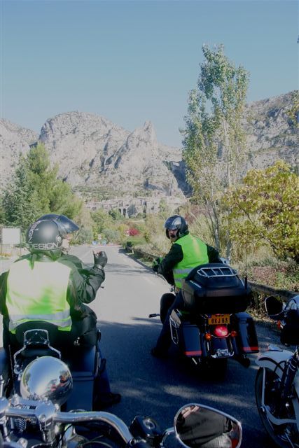 Balade à Moustiers Ste Marie Dimanche 26 Octobre 2008 §§§ "Moustiers Sainte Marie", ce haut lieu de la faïence Provençale , est de plus un nom de destination qui sonne bien et qui pousse à la balade. La preuve en est le succès de cette randonnée automnale où nous étions presque 50 motos. Après un joli parcours sur nos bucoliques départementales et une pause café à Vinon sur Verdon au milieu d'un marché animé, nous voilà à " La Bonne Auberge ", il faut le dire un très sympathique restaurant, une cuisine et un service impeccables ainsi qu'un accueil très chaleureux. Puis, pour digérer, rien de mieux que de flâner à pied dans les ruelles de ce charmant village, niché au sortir de cette faille où la bonne étoile veille sur la cité. Puisque c'est d'astre que nous parlons, le nôtre, entendez le Soleil, était bien présent, imposant sa trêve dans la grisaille du moment !!! Une super journée, à quand la prochaine ? §§§