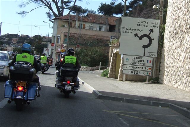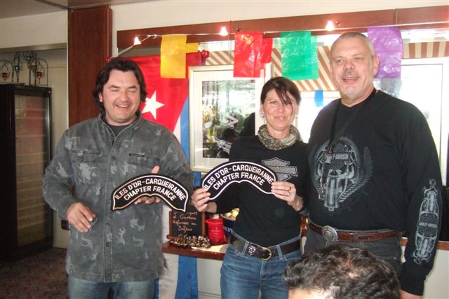 Les Tagliatelles aux Gambas et aux Noix de St Jacques §§§ Dimanche 16 Mars 2008 Je me vois dans l'obligation de changer le nom de cette balade. Ces "Oursins" tant attendus, tant désirés, tant imaginés déjà, cette couleur corail, ces odeurs d'iode et de pain chaud mêlées, ces oursins rêvés n'étaient pas au rendez-vous de l' assiette. La nature a décidé de leur accorder un sursis et ses éléments en furie ont empêché les cueilleurs de les arracher à leur mer nourricière. Mais, aidé par la qualité de l'acceuil et de la prestation culinaire du restaurant du "casino Barrière" de Carry le Rouet, notre déception fut de courte durée et vite oubliée. A la fin du repas, Thérèse, Marianne, Michel et Marc se sont vu remettre officiellement les insignes du Chapter. Ce délire des papilles, me fait presque oublier la balade, qui nous a fait admirer ces paysages de roches nues et déchiquetées de cette partie de notre belle côte Provençale, de Cassis à Carry le Rouet. §§§