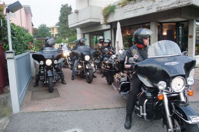 17ème European Du Mercredi 24 au Dimanche 28 Septembre 2008 §§§ C'est pas moins de 40 membres de notre Chapter qui se sont retrouvés pour le 17 ème European HOG Rallye au Lac de Garde en Italie. Si à l'aller les départs se sont répartis entre le mardi et le mercredi, le retour s'est fait en un seul groupe et je peux vous garantir que nous avons formé un très beau convoi sur les 580 km du parcours. Ce fut un très beau rallye, sur un site agréable, dans le cadre fantastique du Lac de Garde et surtout, de part l'accueil chaleureux des Chapters Italiens en général et du Chapter de Brescia en particulier, ce dernier nous ayant organisé une balade et invité à une soirée, qui j'en suis persuadé resteront dans les mémoires !!! Félicitations à tous les membres du Chapter ayant participé à ce beau voyage. En effet il faut souligner que malgré le nombre, celui-ci s'est déroulé impeccablement dans une ambiance extraordinaire. Coup de chapeau aussi aux nouveaux membres qui, malgré leur peu d'expérience dans les déplacements en groupe ont assuré, ce n'est pas toujours évident de rester concentré sur des centaines de kilomètres, il est évident que parfois il faut faire un petit effort et avoir l'esprit de groupe. §§§