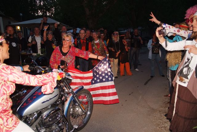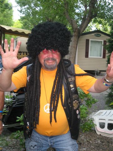Parés de magnifiques accoutrements qui auraient fait pâlir d'envie Janis Joplin, nous traversons le camp en délivrant nos messages d'Amour et de Paix et rencontrons d'autres "sœurs et frères", animés du même désir festif.