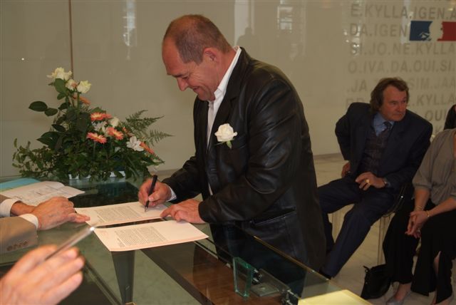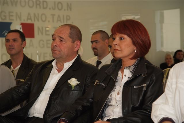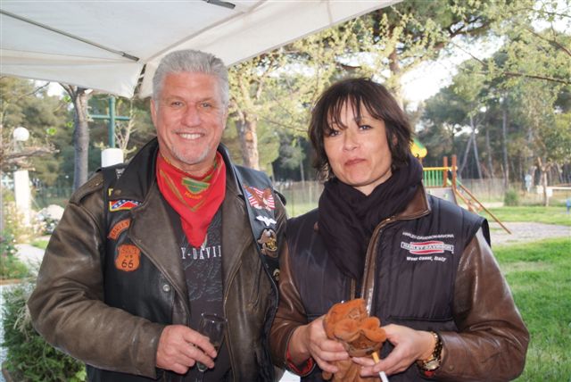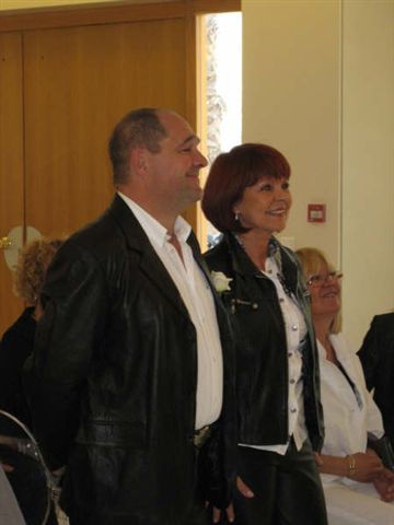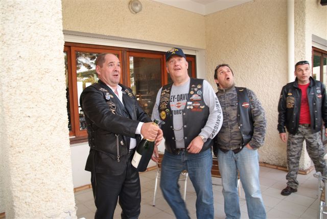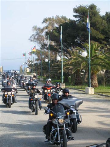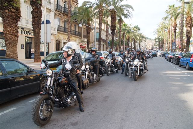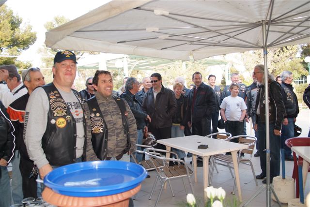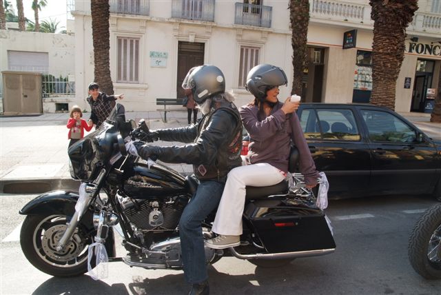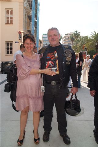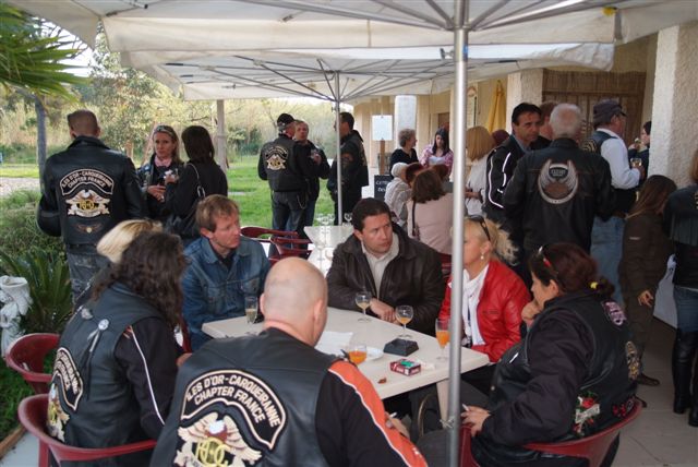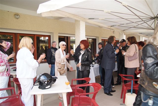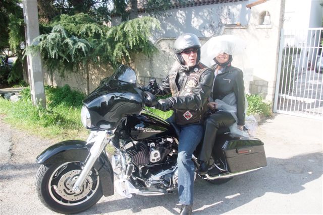de Harley-Davidson a escorté les jeunes mariés du domicile des promis à la Mairie d'Hyères les Palmiers, puis le joyeux et tonitruant cortège s'est dirigé au travers des rues animées de la cité, vers le Port et les plages, pour arriver aux "Pins Maritimes" où un buffet d'honneur l'attendait.