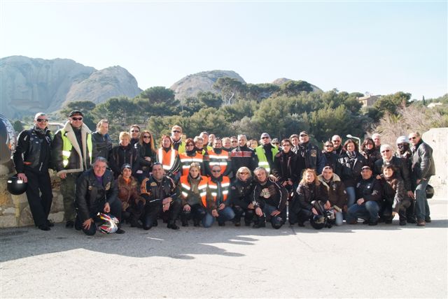 CALANQUES ET CRETES §§§ Dimanche 15 Février 2009 §§§ Première balade de l'année, 58 membres, 36 motos, 1 soleil, 1 (Lot) de belles routes, 1 (Paquet) de chouettes points de vue, 1 (Rencontre imprévue) avec le sympathique Sun South Coast Nice Chapter, 1 restaurant, 58 couverts et 1 (Max) de bons copains (Et aussi de copines, pardon mesdames). Je ne sais pas si tous ces chiffres peuvent faire une belle équation, mais le résultat est là, empirique certes, mais POSITIF A 100% !!! Look at the smiles on the pictures §