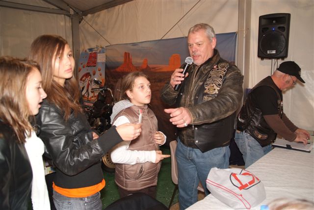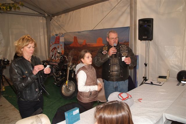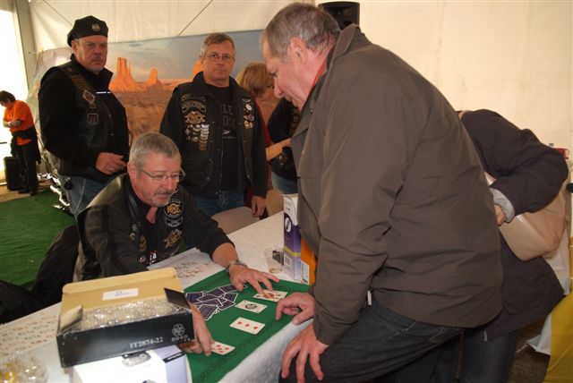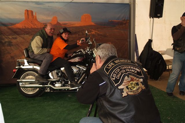 Notre Chapter, avec le soutien de notre Concession, a organisé des Baptêmes en HD, la Vente de T-shirts commémoratifs et de Revues d'occasion, une Tombola, la réalisation de Photos souvenirs sur une HD devant notre traditionnel décor de "Monument Valley", avec en plus cette année, d'une part un "Poker Winner's" avec plein de lots à gagner et d'autre part la vente d'objets réalisés par Ghislaine et de petits gâteaux faits maison par Babeth !