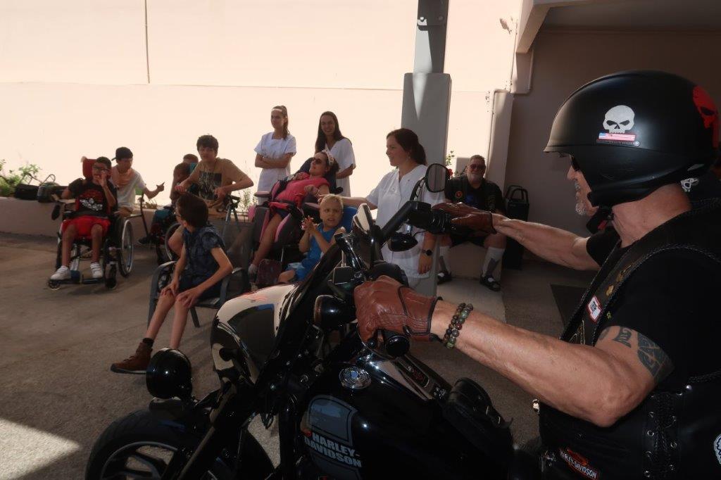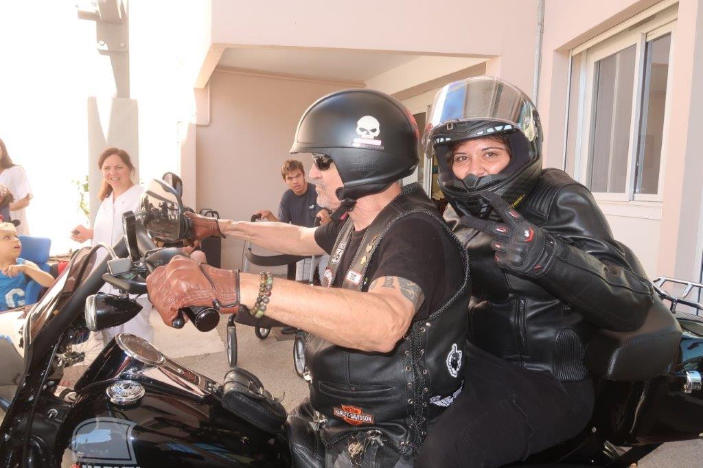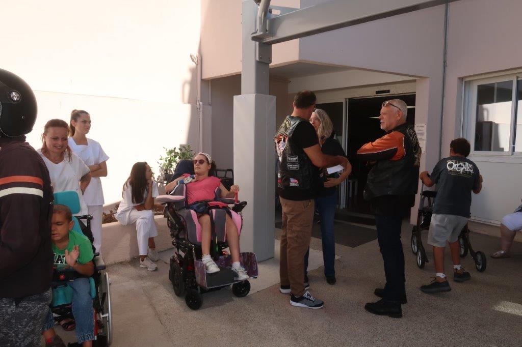 Sur une idée de Christophe, en remerciements aux soins prodigués à son fils Julian par le personnel de l’Institut de Rééducation Pomponiana-Olbia, notre Association a organisé, à leur intention, une demi-journée « Baptêmes en Harley-Davidson ».
