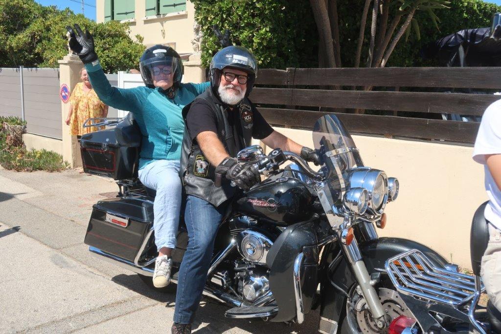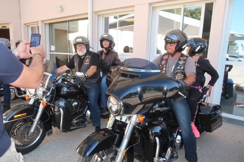 Sur place, notre modeste participation a animé « bruyamment » la matinée des patients et des soignants, ceci avant que deux cortèges successifs, dans une boucle jusqu’aux Salins d’Hyères, fassent découvrir au personnel volontaire le plaisir de rouler en Harley-Davidson.