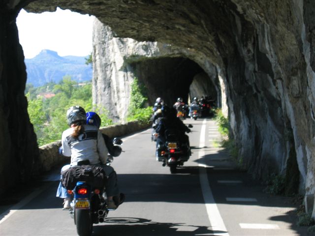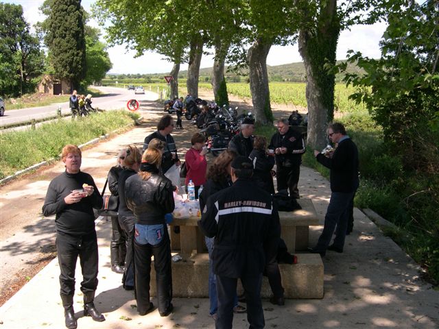Au péage de la Ciotat où un groupe nous attendait, les éclairs et l'orage nous sont tombés sur les casques ! Heureusement que nous avons pu nous abriter, car la pluie diluvienne a duré un bon moment. Heureusement le ciel s'est dégagé, la pluie s'est arrêtée et nous sommes repartis avec la météo pour alliée, puisque le reste du week end a été ensoleillé.