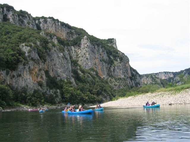 Le Dimanche a été consacré au canoë kayak et non à la moto. Descente de l'Ardèche sur 7 kms jusqu'au Pont d'Arc au fil de l'eau et des magnifiques paysages. Pique-nique au bord de l'eau.