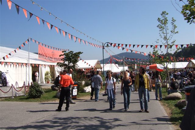 Sept membres de notre chapter ont eu la joie de « participer » à la folie de Faaker See ! Ce n'est pas une légende, tout est grandiose et si l'on veut voir un max de motos il faut y aller ! On nous a annoncé 60 000 motos et 100 000 personnes ! Impressionnant ! Un cadre splendide : lacs, arbres, montagnes et au milieu de tout cela les sites où des tas de choses s'y déroulent ! A faire ou à refaire ! |
