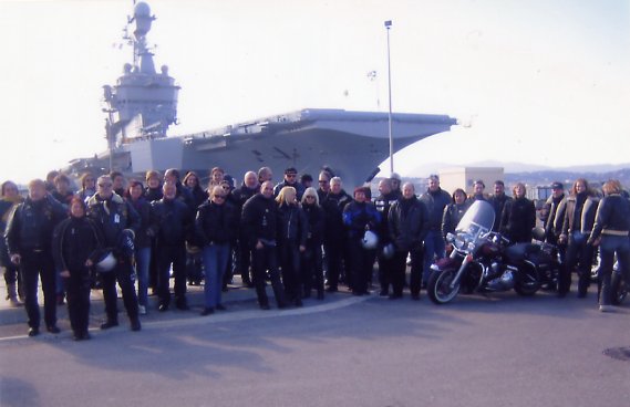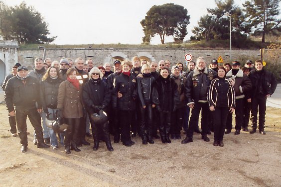 La journée a commencé par une balade très raccourcie par rapport à celle prévue, car un vent glacial soufflait sur la région. Un grand bravo aux courageux venus de Port de Bouc et de Trêts, qui sont arrivés complètement frigorifiés. Bravo également aux autres participants, car nous étions tout de même 26 Motos. Il est quand même dommage que 11 places aient été perdues, au vu de l'insistance que le Chapter a manifesté auprès des autorités du Charles de Gaulle pour porter le nombre de participants de 45 à 58.