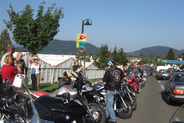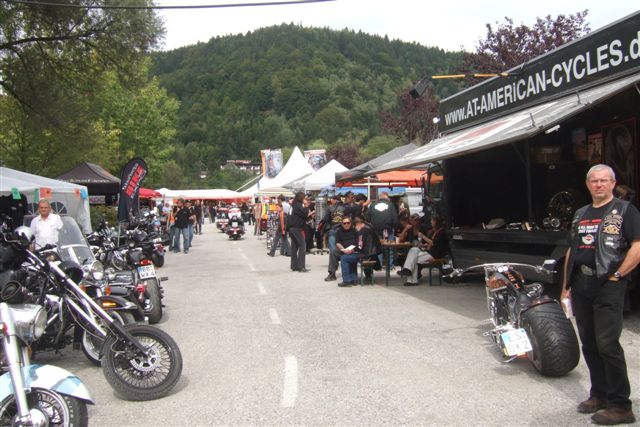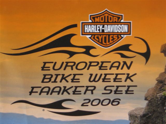 Du 03 au 11 Septembre 2006. EUROPEAN BIKE WEEK FAAKER SEE 2006 §§§ Page 1 - Page 2 §§§ Ce n'est pas moins d'une vingtaine de membres de notre Chapter qui se sont rendu en Autriche pour ce grand événement que représente le rallye de Faaker See. Claudine ayant fait ses habituelles incantations au Dieu du beau temps, celui-ci, magnanime nous a offert huit jours de soleil, la route et le séjour furent donc des plus agréables. Outre, la bike-week, avec sa multitude d'exposants, ses milliers de Motos, de Bikers et son ambiance "Saucisses et Fête de la bière", nous avons fait un peu de tourisme, autour de Faaker See, Landskron, Villach et plus au nord également, jusqu'à Salzbourg "La petite Rome des Alpes" , mais aussi plus au sud, en Slovénie jusqu'à Ljubljana, la capitale et Bled "la romantique", nichée dans un cadre d'une beauté à couper le souffle. Que du bonheur, une semaine inoubliable !!! A la prochaine, en 2007 peut-être !!! §§§