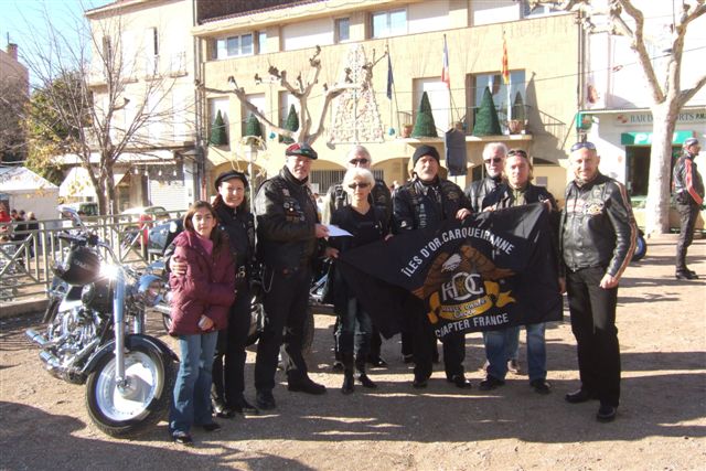 Samedi 09 Décembre 2006 LE TELETHON Cette année, comme l'an dernier, notre Chapter a choisi de ne pas faire de "Baptêmes en Harley Davidson". Une délégation de nos membres s'est rendue à Carqueiranne pour remettre, au nom de notre Chapter un chèque libellé à l'ordre de l'A.F.M. Téléthon, à Madame Fabienne Giraud, épouse du Maire et Présidente de l'Association "Le Chêne et le Roseau" qui organise cette manifestation caritative sur notre commune.