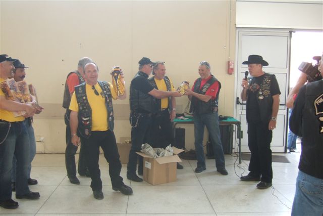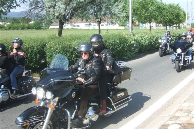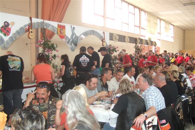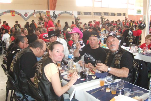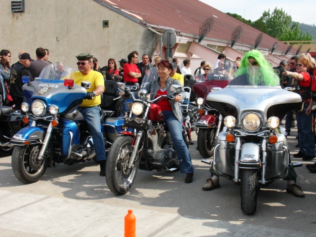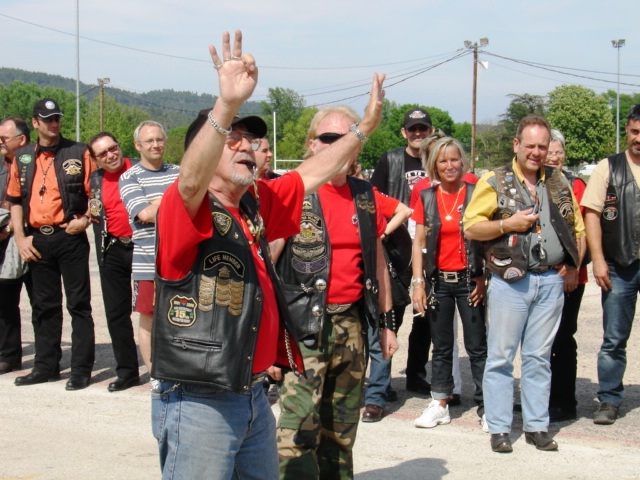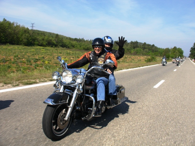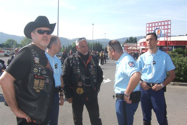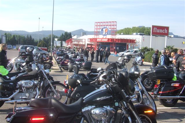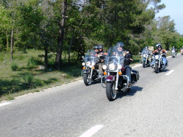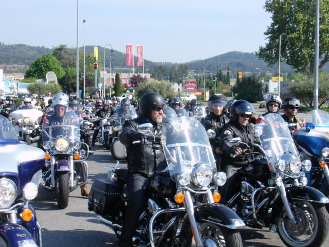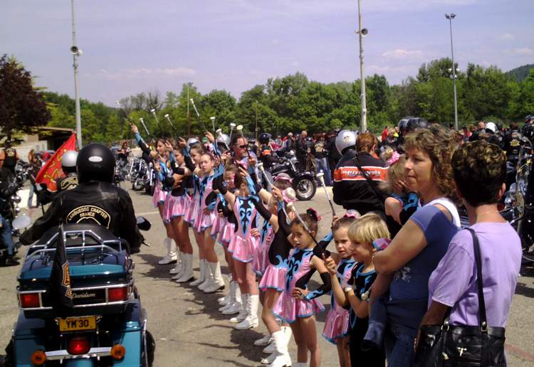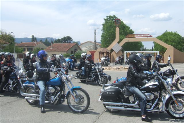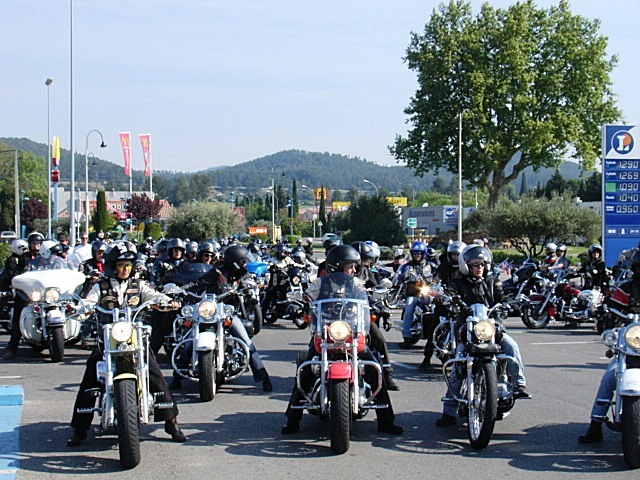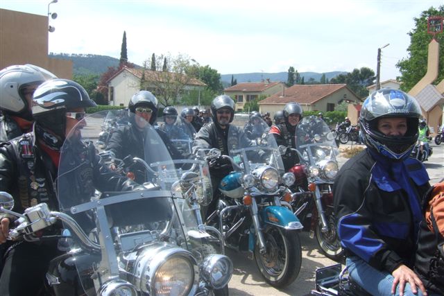 §§§ Ce sont 79 membres de notre Chapter et 55 motos, qui ont participé à ce 4ème Interchapters "Méditerranéen" 2007, qui a vu pas moins de 358 membres des Chapters d'Avignon, Fréjus, Carqueiranne, Marseille, Montpellier et Nice, chevauchant quelques 250 machines, se réunir dans ce sympathique village du Centre Var pour partager leurs passions communes, amitié, convivialité, bonne humeur, évasion, balade... et bien évidemment Harley Davidson !!! Cette année La Balade a été préparée et encadrée par le Chapter de Fréjus, son savoir-faire reconnu en la matière a fait merveille, car conduire ce convoi de quelques 250 motos sur nos belles petites routes Varoises est un exercice particulièrement difficile, surtout que, malgré une déclaration en préfecture faite en temps et en heure, notre convoi a croisé une manifestation de cyclotourisme, encadrée par des organisateurs quelque peu intolérants voire belliqueux. Un grand merci à tous les officers et membres de nos Chapters respectifs qui ont travaillé, pour faire de ce 4ème Interterchapters, qui cette année est devenu "Méditerranéen", une magnifique réussite. Il convient également de remercier la commune de Brignoles, pour son accueil et son soutien, la gendarmerie, très réactive, qui a mis au pied levé les 3 motards qui nous ont ouvert la route à Brignoles, Anne et Alain de la société Tahiti Pacific pour la qualité de leur buffet et de l'ensemble de leurs prestations, la merveilleuse troupe de Majorettes de Forcalqueiret pour sa représentation magnifique et colorée et enfin le soleil pour avoir été au rendez-vous. UNE SUPER JOURNEE, VIVEMENT LA PROCHAINE !!!
