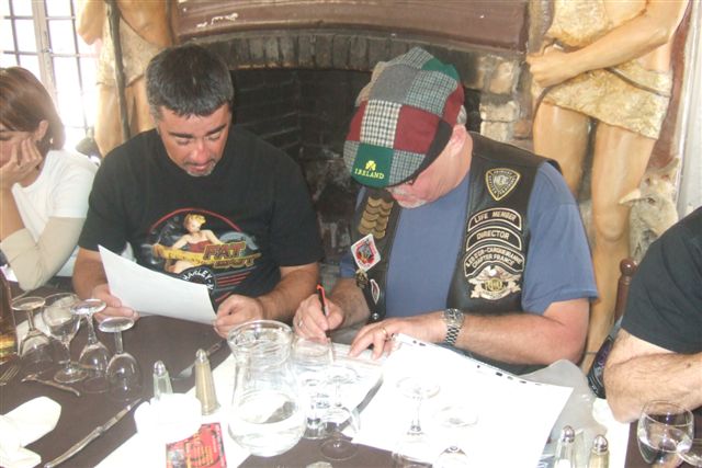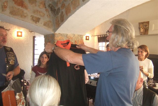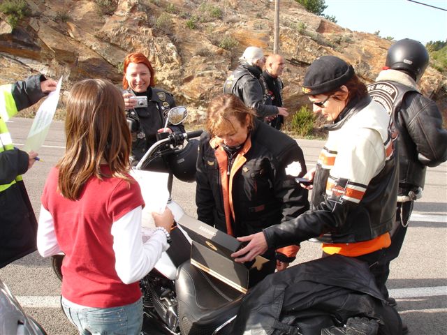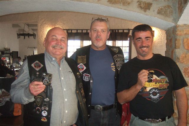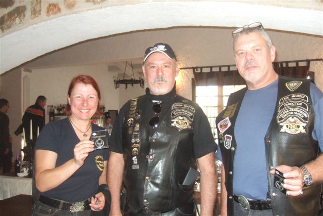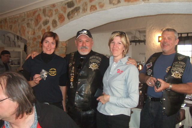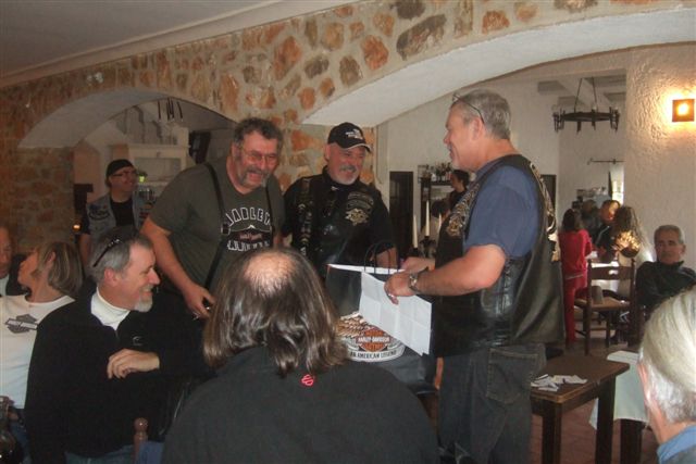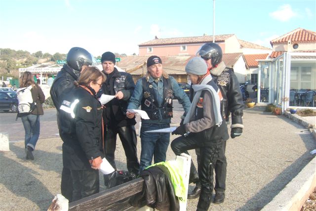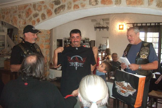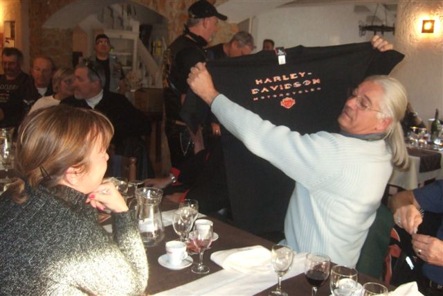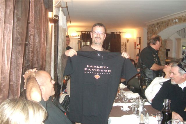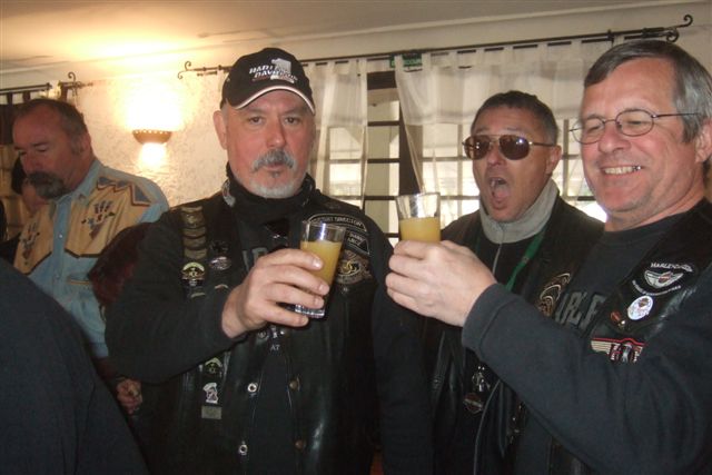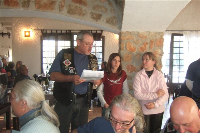 Dimanche 18 novembre 2007 RALLYE ANNUEL du Chapter C'est la tradition, notre Rallye annuel est dédié au Téléthon. Dans le petit matin de ce dimanche glacé, les courageux participants carapaçonnés dans leurs vêtements d'hiver, armés de leur seul road book, sont partis dans le froid à la recherche des points de contrôle où les attendaient d'intraitables examinateurs. Après avoir traversé, ces épreuves où leur chance au jeu, leurs connaissances, leur mémoire et leur adresse ont été testés, ils ont pu enfin, devant le bon feu de cheminée, de l'auberge des Danjean, reprendre des forces (et des kilos) en dégustant l'excellente cuisine du maître des lieux. Je remercie ici, tous ceux qui m'ont aidé à la préparation et au bon déroulement de cette journée et tous les participants pour leurs contributions à l'oeuvre du Téléthon. Un grand Merci également à notre concession "Harley-Davidson Carqueiranne" qui a fourni les lots de la Tombola et les récompenses des jeux.