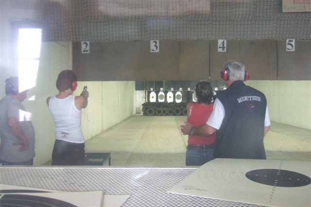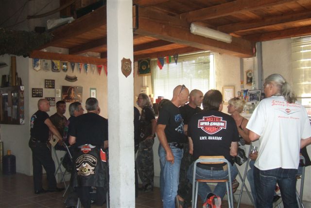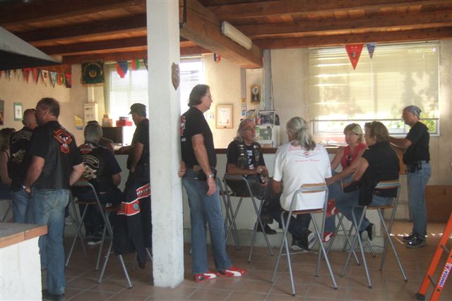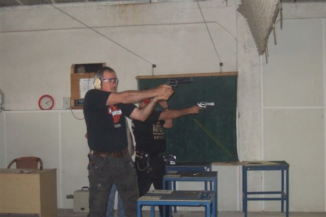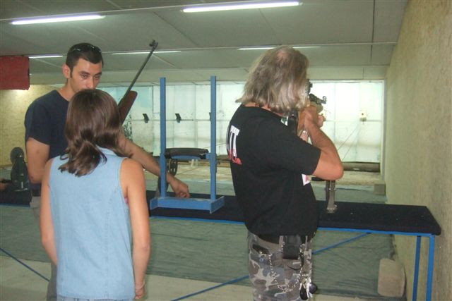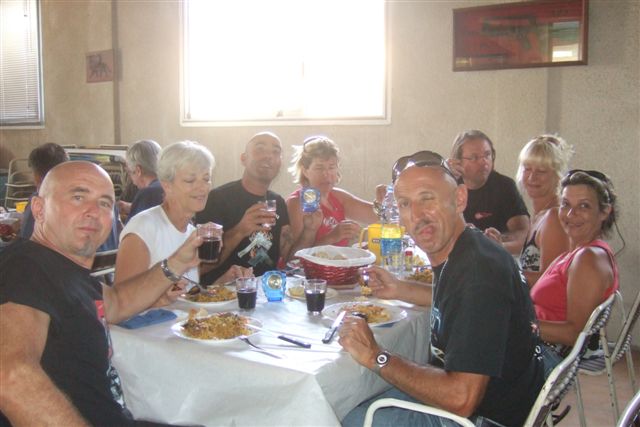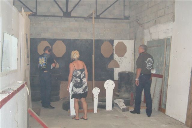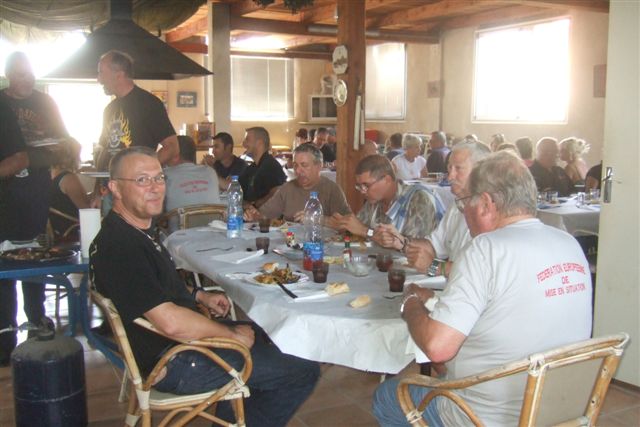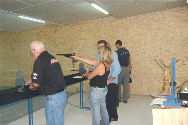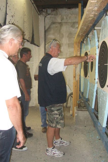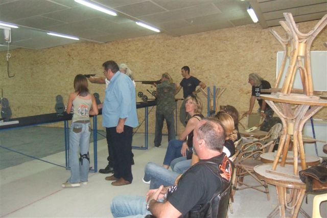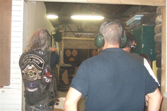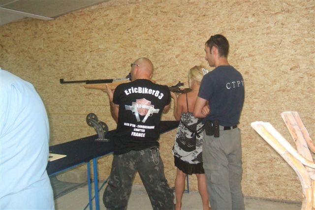 BALADE, TIR & PAELLA Dimanche 26 Août 2007 §§§ La balade de ce dernier dimanche du mois d'août ne fut pas très longue (Une petite centaine de km), car le timing de cette journée à thème, a du tenir compte des impératifs du CTPV (Club de Tir Police Varois) qui nous a accueilli, très chaleureusement, dans ses locaux de la Seyne sur Mer. Mais, je crois pouvoir affirmer, au vu de la satisfaction générale, qu'aucun des participants n'a regretté son déficit de kilomètres. L'initiation au tir à été organisée, de façon très ludique sous la forme d'un mini concours. Nos vaillantes motardes et nos vaillants motards ont donc pu mesurer leur adresse, tour à tour au pistolet et à la carabine à air comprimé, puis au revolver en calibre 38 "spécial"et pour finir au pistolet automatique en calibre 9 mm "Parabellum". Vous pourrez reconnaître les heureux gagnants en regardant le reportage photo. Après le traditionnel apéro, place au troisième volet de cette journée, une excellente paëlla préparée sur place et dont les merveilleuses odeurs de cuisson ont parfumé le stand de tir et excité nos papilles durant les séances de tir. Un grand merci à l'équipe du CTPV qui a fait de cette journée découverte, une expérience très réussie pour tous.