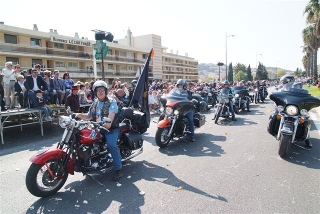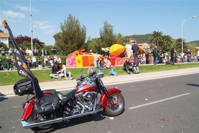 CORSO FLEURI à CARQUEIRANNE §§§ Dimanche 18 Avril 2010 § C'est une première pour notre Chapter, cette année nous avons été sollicité pour faire l'ouverture du Corso Fleuri de Carqueiranne. Notre présence, 28 motos tout de même, qui volontairement, n'avait pas été annoncée par les organisateurs, pour créer la surprise, a été très appréciée par les spectateurs mais également par les membres de notre Chapter, qui semblaient ravis de participer au show. §§§ A BIENTOT !!! |
