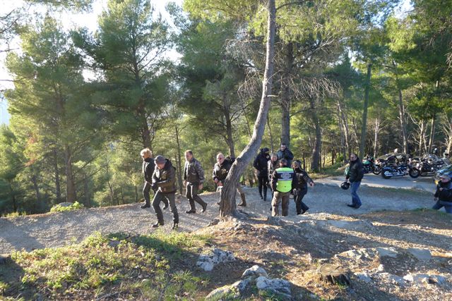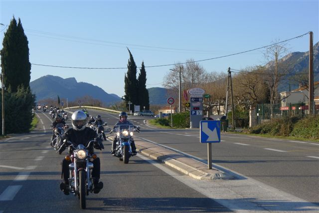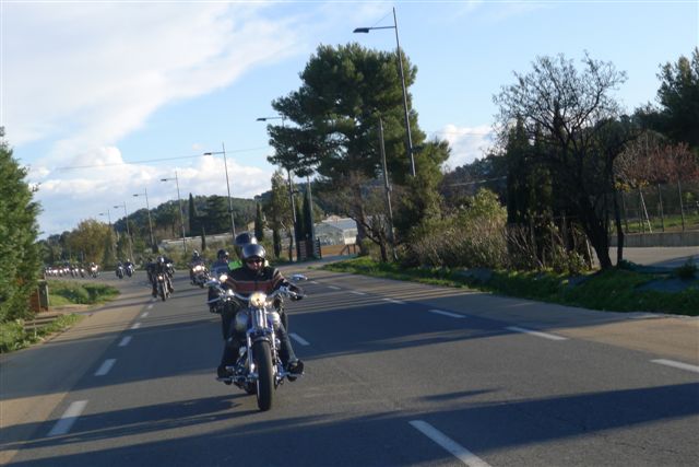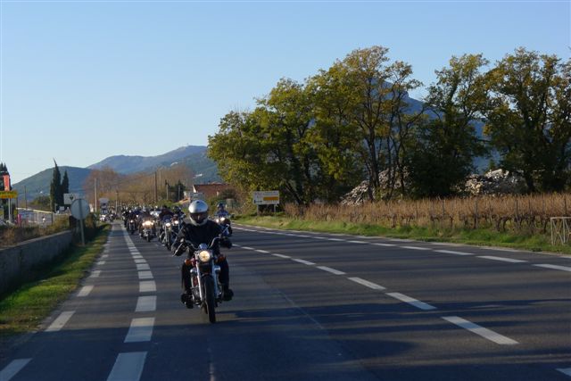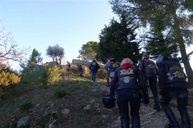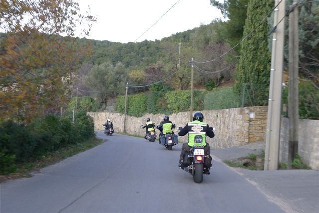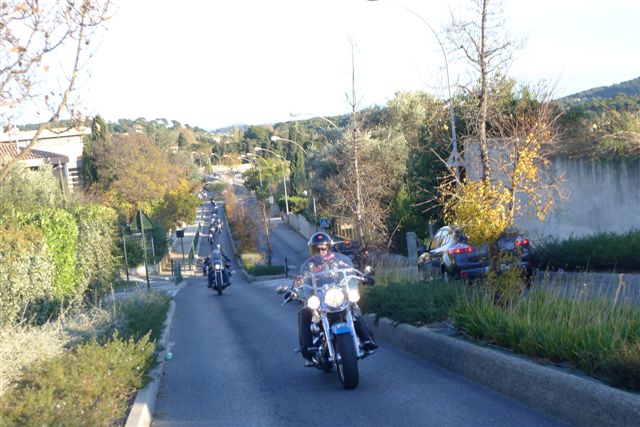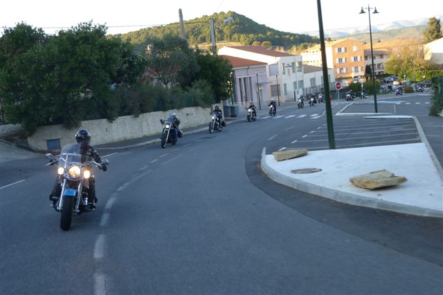 Après la sympathique, mais solennelle bénédiction des motos et des équipages, faite par le Père Raphaël, curé de Carqueiranne, nous voici partis pour une petite balade qui nous a mené au Beausset-Vieux.