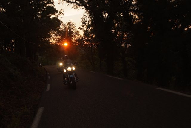 Rouler à "la fraîche" par ces chaudes journées d'été, c'est un peu comme plonger dans l'onde vivifiante d'un lac de montagne, c'est le pied, quoi !!! On ajoute à la recette, quelques (toutes) petites routes de notre arrière pays, baignées par une lumière crépusculaire et là c'est un autre monde, un dépaysement total !!!