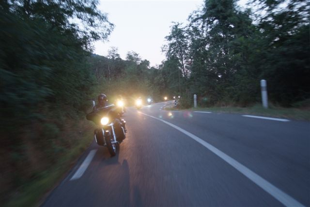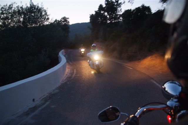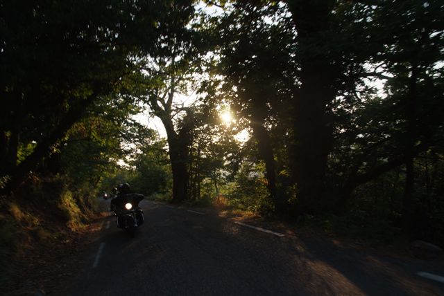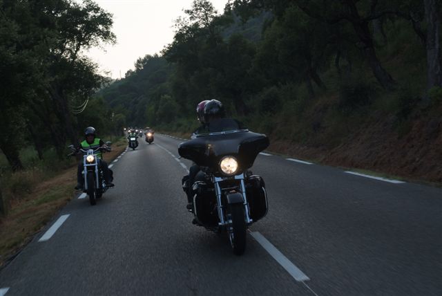 §§§ L'été, c'est le top, mais... Dur, dur !!! De ... rouler au frais. La solution, rouler quand le soleil n'est plus là. Qu'il est agréable de se baigner dans la fraîcheur de la nuit au son de nos « V-touines ». Autre avantage, voir différemment notre environnement, vision enchanteresse d'un coucher de soleil avec ses dégradés de lumière, visions mystérieuses au travers d'une brume crépusculaire, visions presque inquiétantes de formes indéfinies à la lueur des phares … Et les odeurs, la nature ayant perdu ses couleurs, avalées par les ténèbres, ce sont ses senteurs qui prennent le relais, pour le plus grand plaisir de nos «papilles» olfactives. §§§