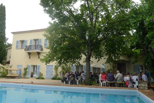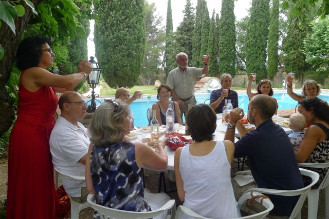 La suite ? Un splendide cadre ombragé au bord d'une piscine, la vue sur un vignoble remarquablement tenu, des amis, un service à table attentionné, des cuistots efficaces, tous les ingrédients pour une fête réussie …