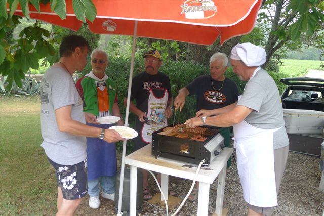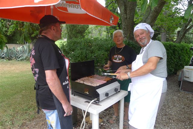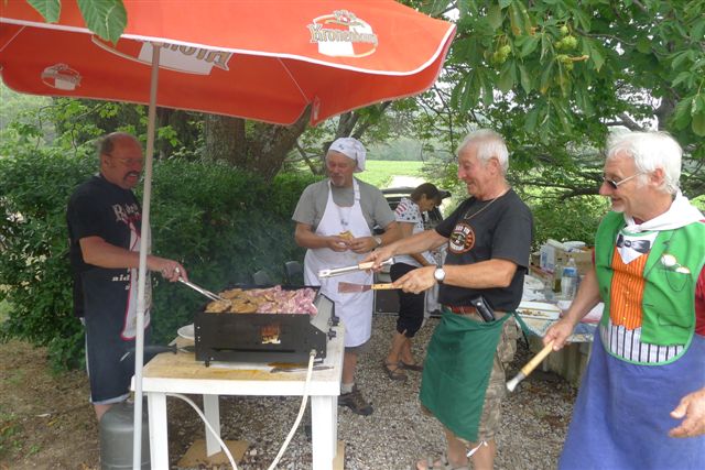 Après la traditionnelle balade, sur les « petites routes » de notre bel arrière pays, Madame Betty-Ann Cundall nous a accueilli dans son magnifique domaine où fumait déjà un sympathique barbecue préparé par notre équipe de valeureux "Barbecue Officers".