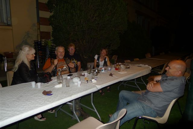 §§§ Cela va devenir une habitude, voire une tradition ...... Les "Moules Frites" du Café de la Gare !!! Une soirée vraiment agréable, entre amis, dans l'ambiance quasi familiale de notre belle cité de Carqueiranne !!! Si nous étions bien installés, nos motos aussi, grâce aux bons soins de la municipalité, qui leur a réservé un espace. Et comme toujours au Café de la Gare, un accueil chaleureux, une table "à volonté ", un DJ efficace et une super ambiance. Que du bonheur !!! A bientôt !!! §§§ §§§ A BIENTOT !!! |