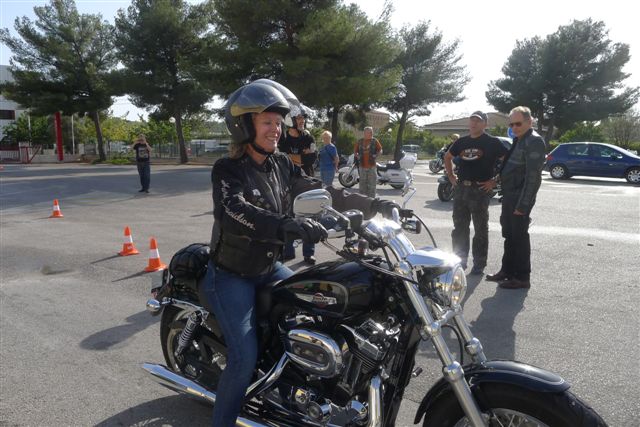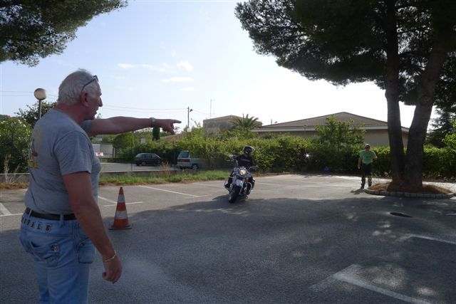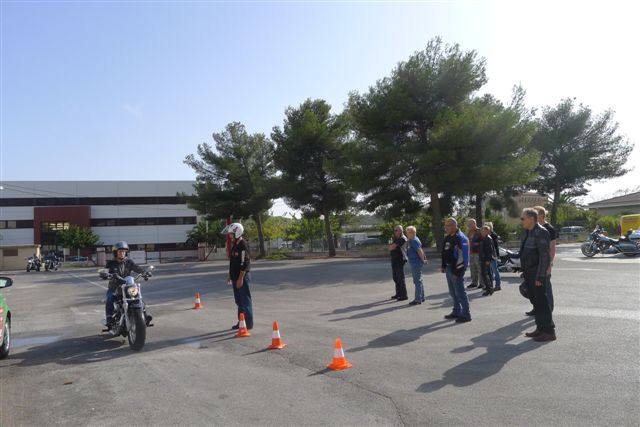 -Et bien sûr la mise en pratique: Comment relever une moto, le freinage d'urgence, les mesures d'évitement, la conduite et la manoeuvre d'une moto pratiquement à l'arrêt.
