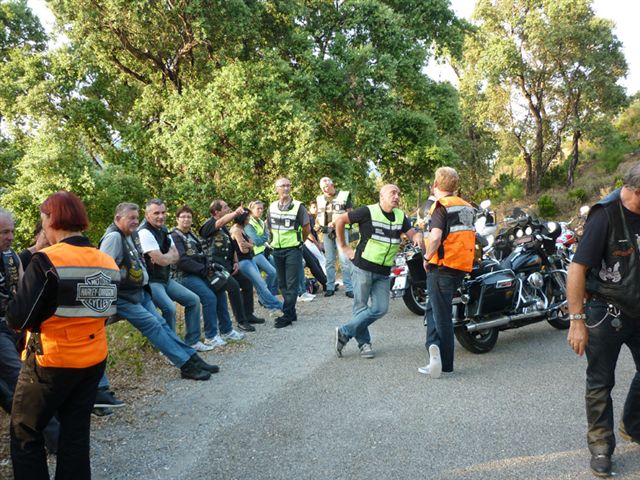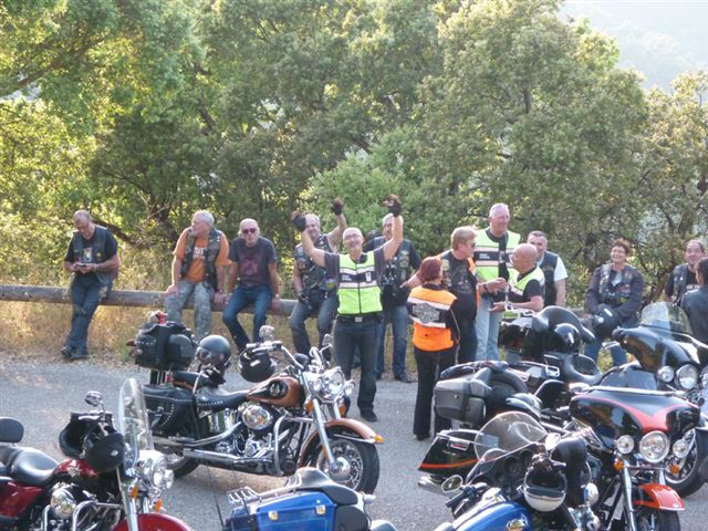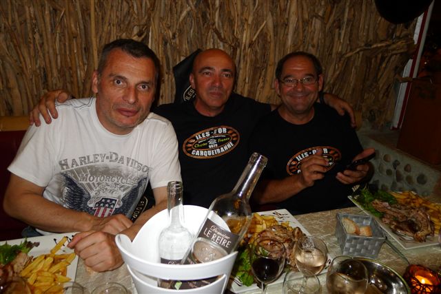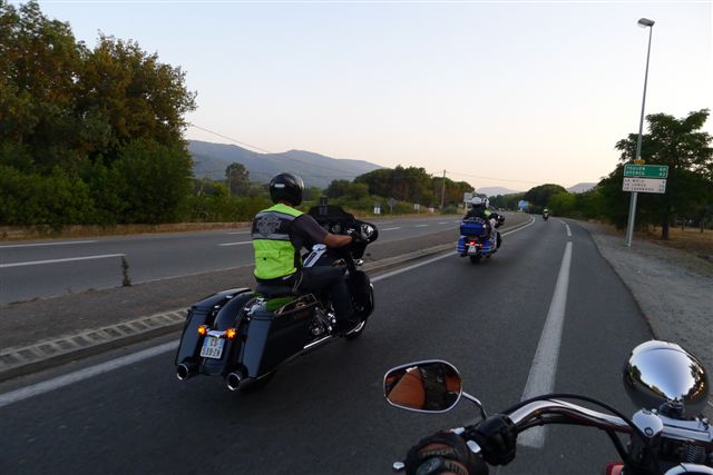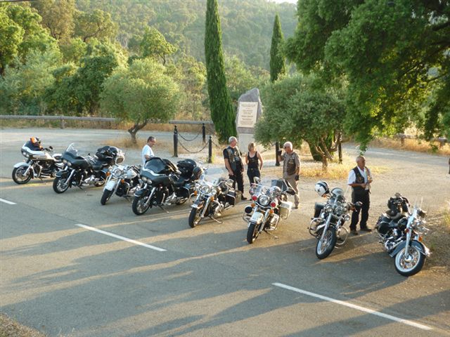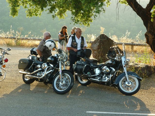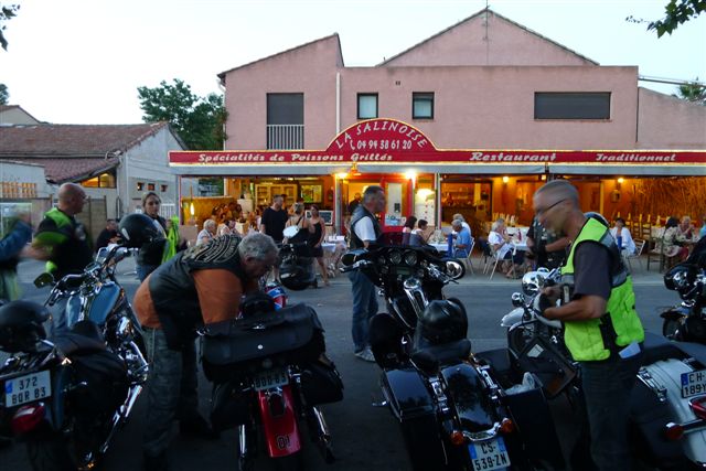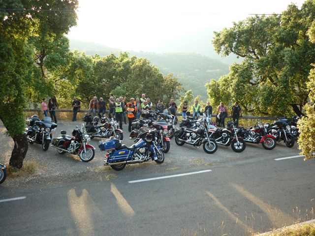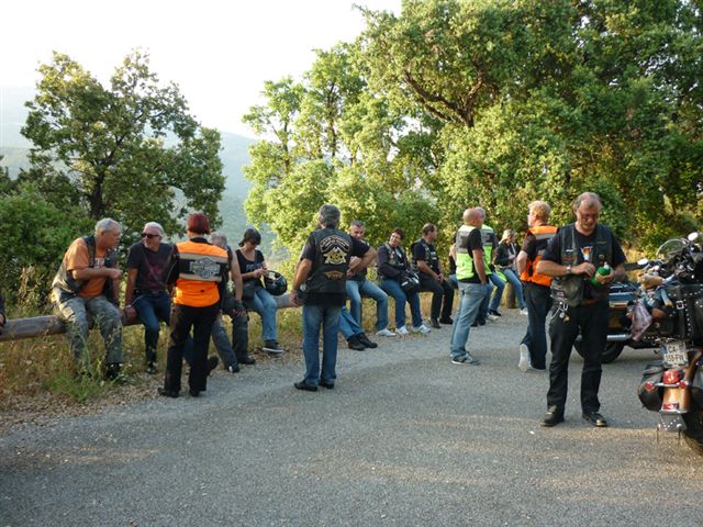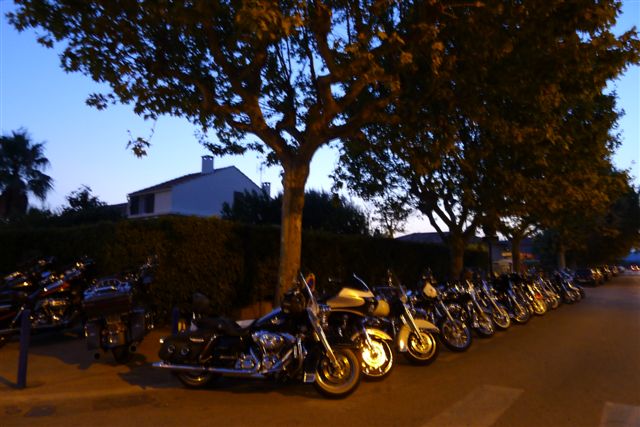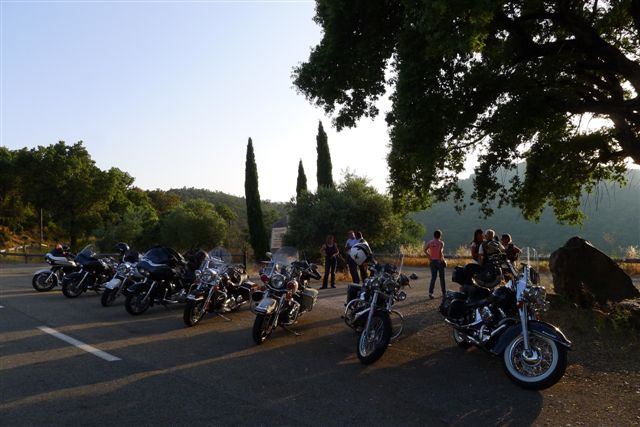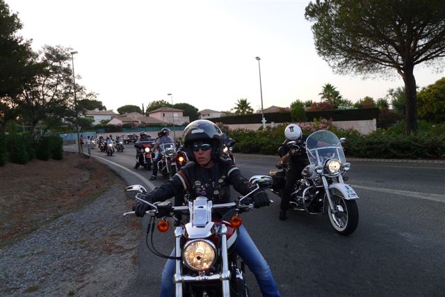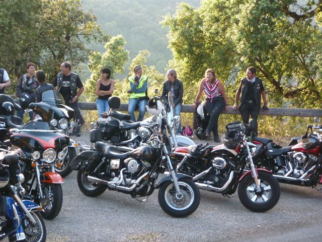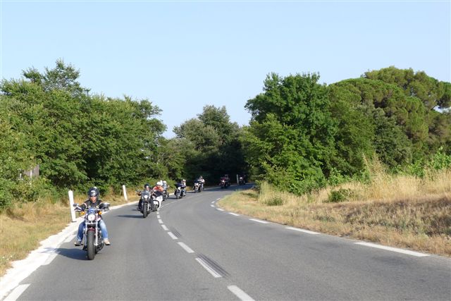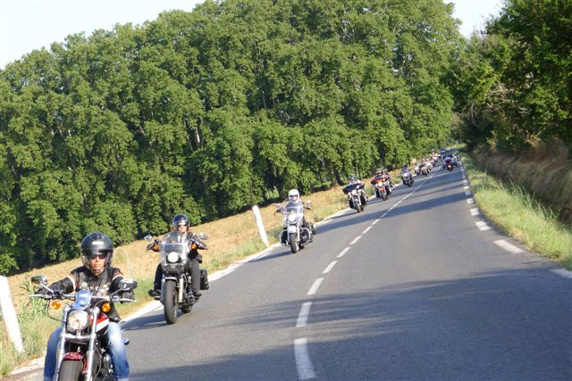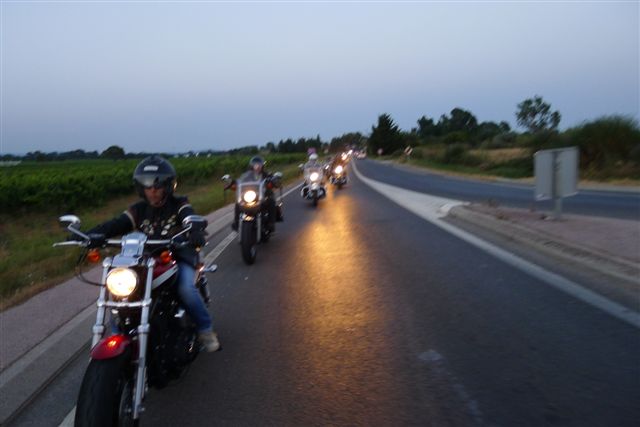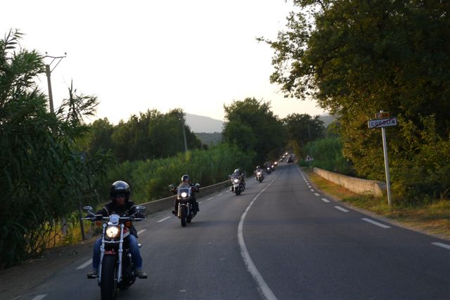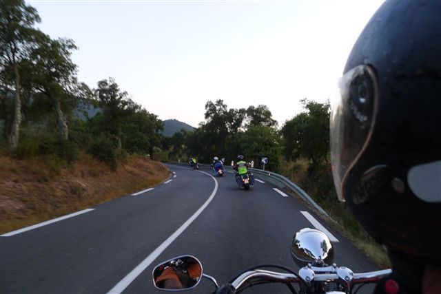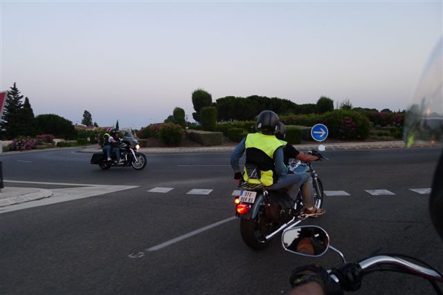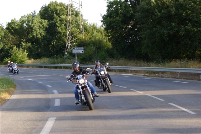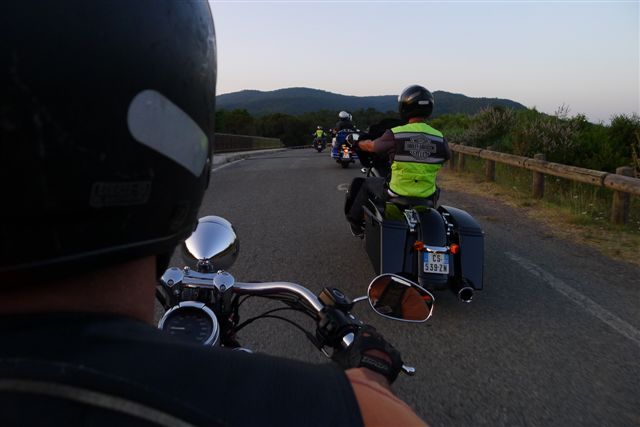 Nos petites routes, sillonnant un arrière pays que beaucoup nous envie, se prêtent merveilleusement à cet exercice. Nous laisser mener par le gros coeur de nos machines et sentir le crépuscule qui lentement mais inexorablement, referme sur nous les mystères de la nuit, c'est une émotion que seule la moto nous apporte, ici nulle carrosserie pour nous isoler de cette "sorgue" qui nous engloutit. Sans cocon, c'est le contact direct avec la nature qui mute vers les ténèbres. Nous nous sentons tout petit, le familier fait place à l'inconnu, tous nos sens sont en éveil, mais on est si bien, rassuré par la présence de ce groupe pétaradant.