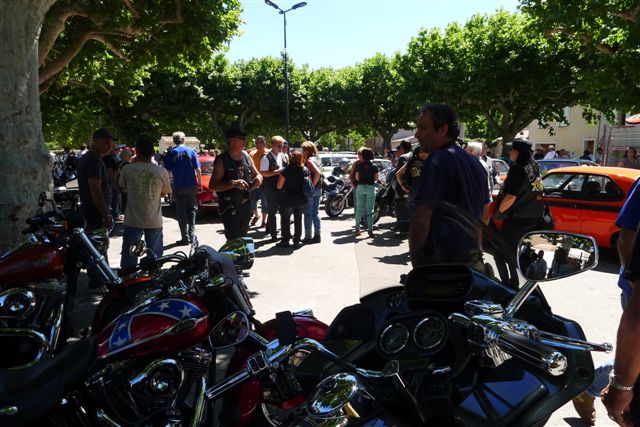 balade dans notre arrière pays Varois préparée par Jean-Paul, une exposition de belles autos bichonnées par des amateurs éclairés, nos motos en Vedettes Américaines, un repas Périgourdin préparé par le Comité des Fêtes de Pignans et bien sûr la convivialité du Chapter, que demander de plus ???